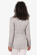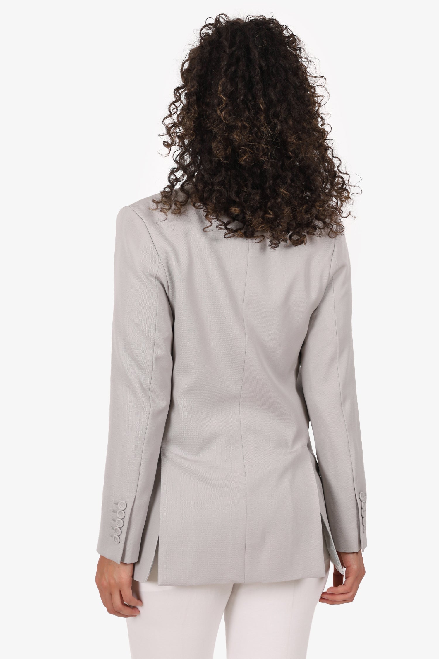 Christian Dior Grey Single Breasted Suit Jacket. Pull-on. Notch lapel. Front button-up closure. Sleeve cuffs with button-up closure. 3 exterior slip pockets; 2 side and 1 chest slip. Lined interior. Built-in shoulder pads. Double rear vents. Tonal stitching.