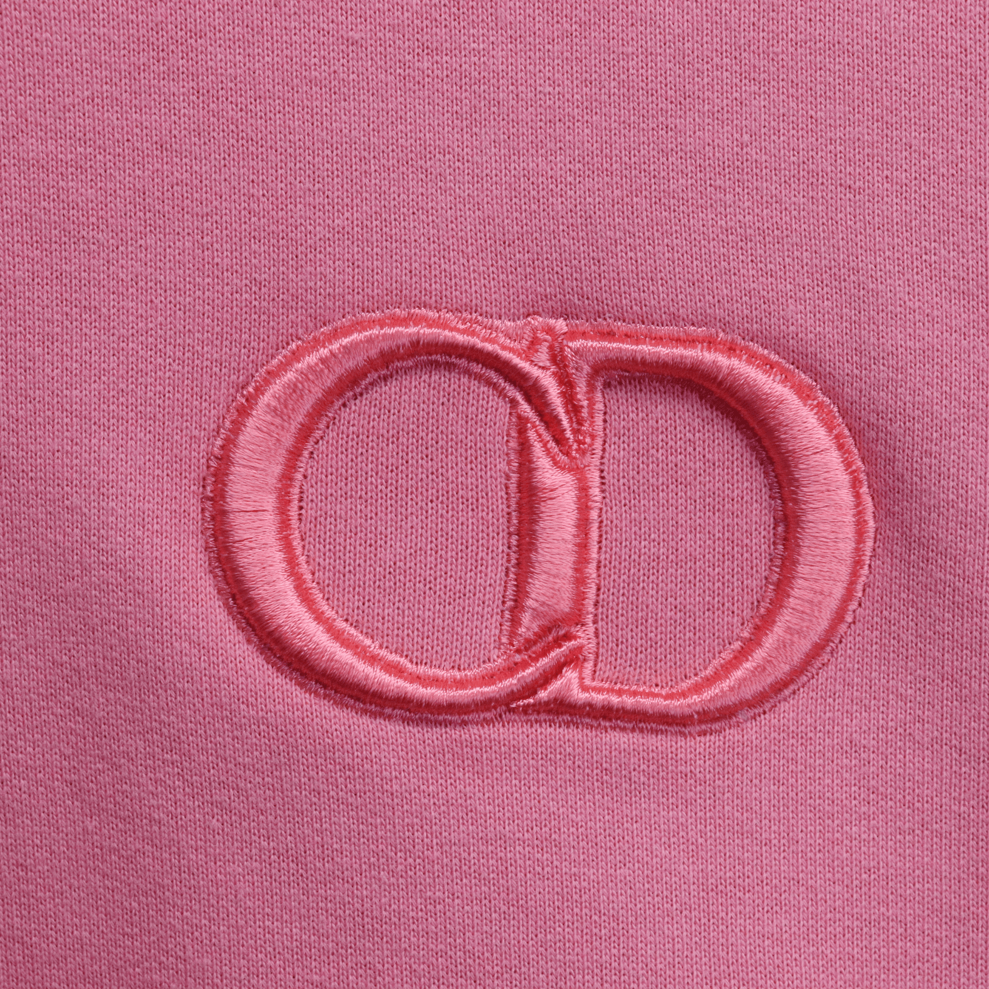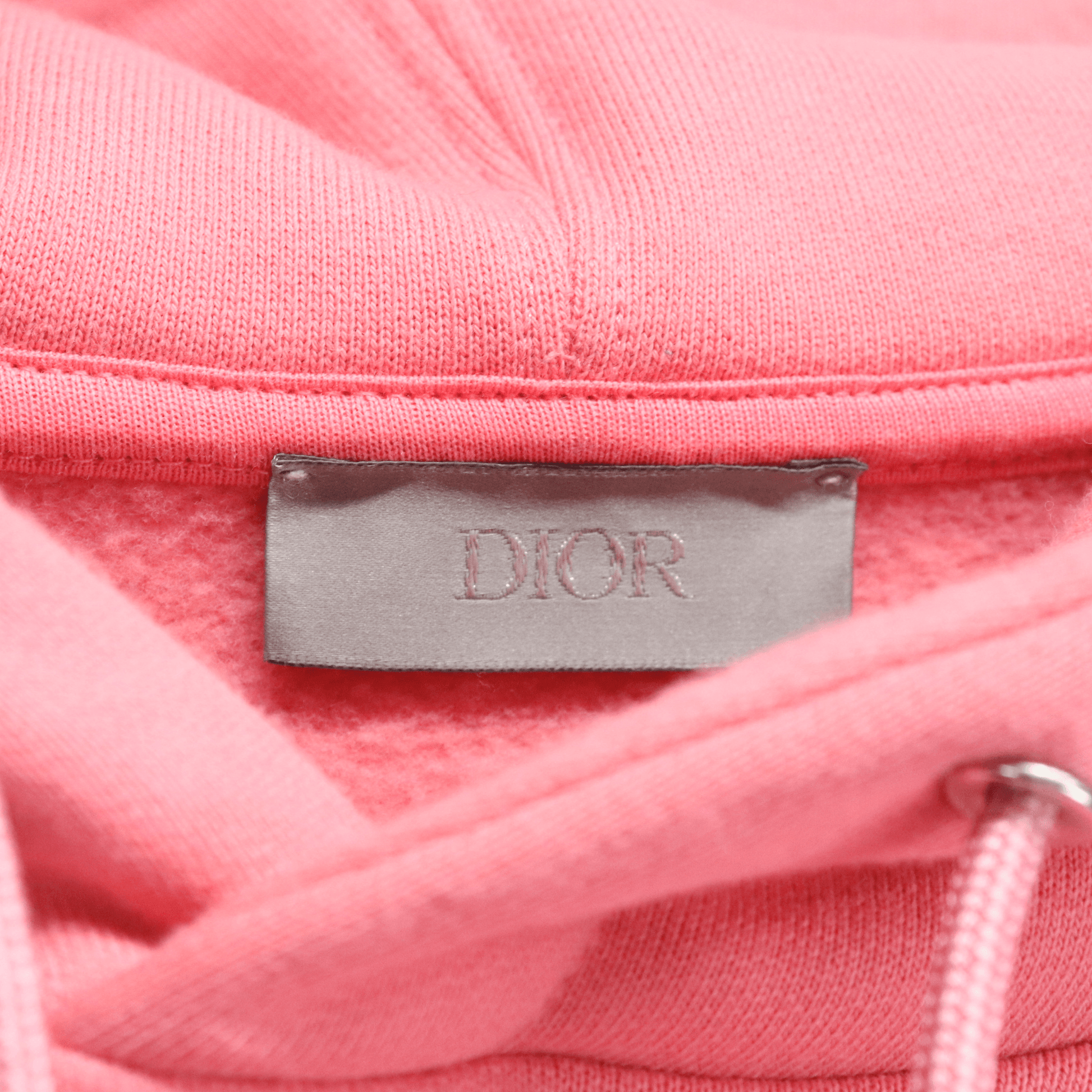 Christian Dior hoodie sweater in pink with an embroidered logo on the chest and branded silver tips on the drawstrings.