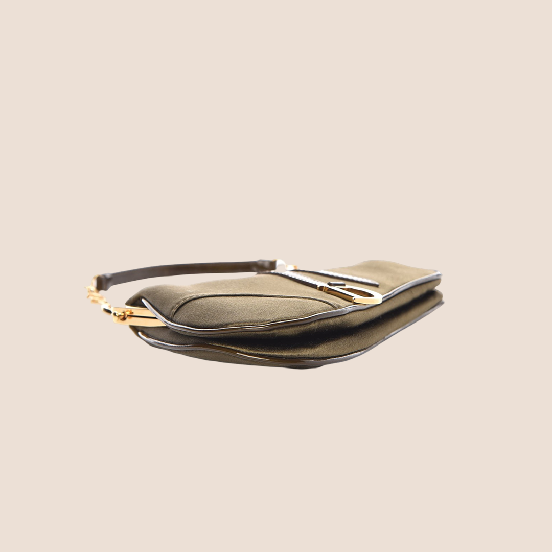 CHRISTIAN DIOR KHAKI & GOLD SATIN MICRO SADDLE BAG