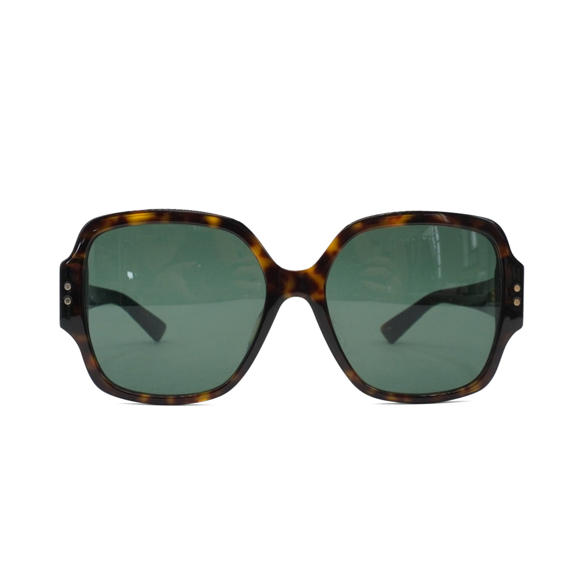 Christian Dior 'Lady Dior Studs 5' oversized square sunglasses in tortoise acetate with cannage quilted arms and logo in gold hardware.