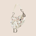 CHRISTIAN DIOR LIMITED EDITION WHITE FLORAL CANVAS SADDLE BAG