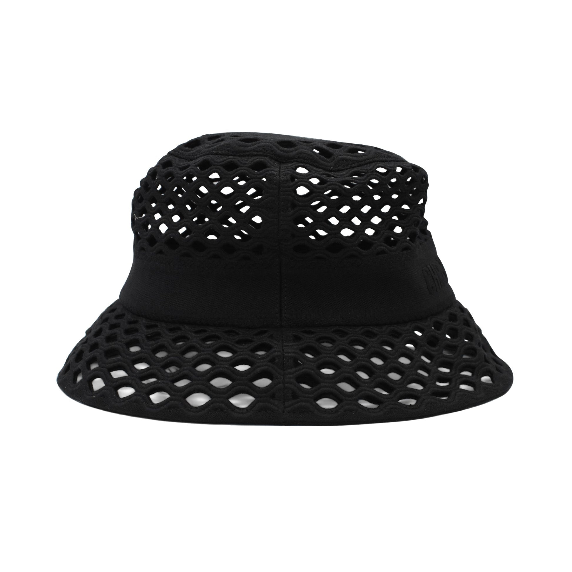 Christian Dior 'Mesh Small Brim' bucket hat in black mesh with a canvas trim around the top and a stitched tonal logo.