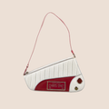 This rare shoulder bag features a combination of white leather, colorblock pattern, multitonal hardware.