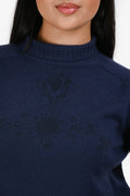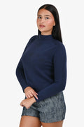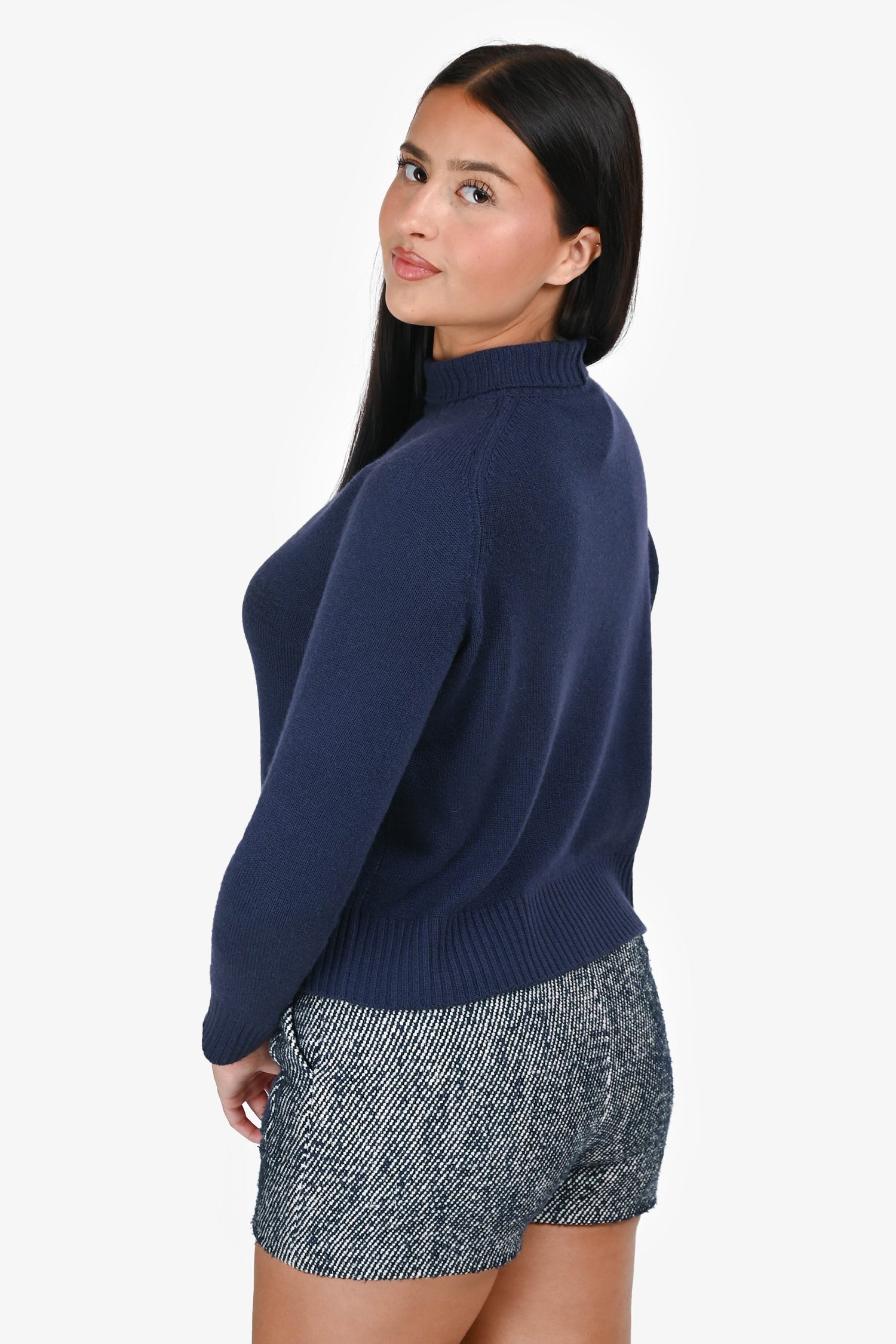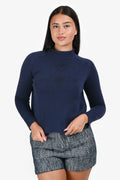Christian Dior Navy Blue/Black Printed Cashmere Turtleneck Sweater Size 4 US
