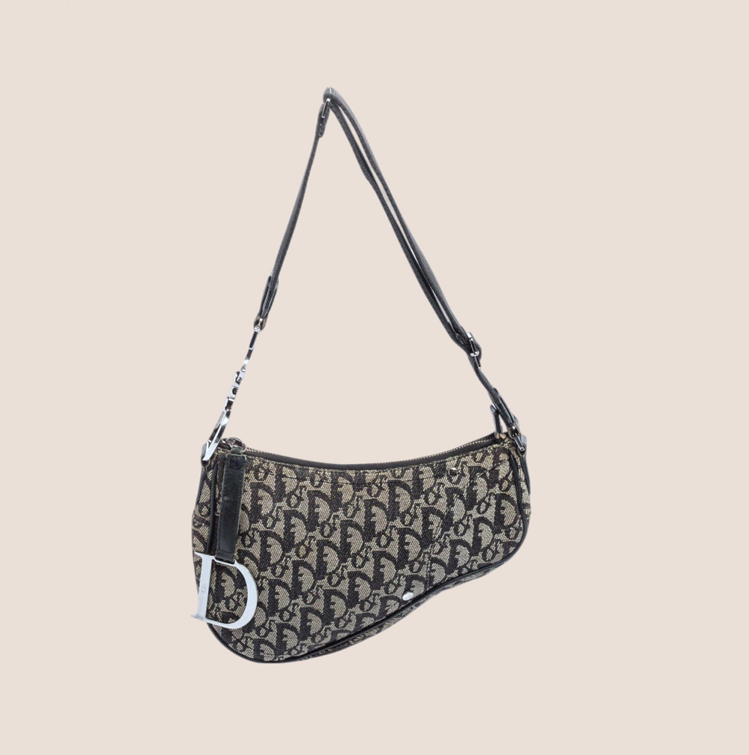 Vintage Christian Dior Navy Oblique Canvas Saddle bag.