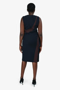 Christian Dior Navy Wool White/Brown Stripe Sleeveless Midi Dress Size 8