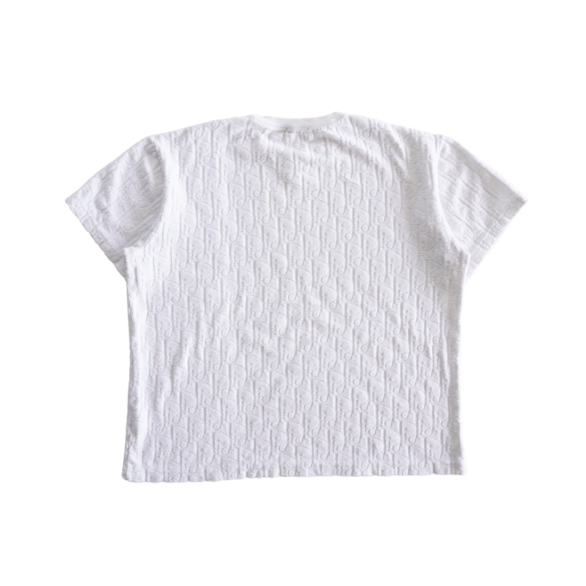 Christian Dior t-shirt in white terrycloth with an all-over embossed monogram oblique print.