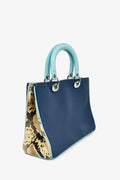 Christian Dior Python Navy/Light Blue Leather 'Diorissimo' Top Handle with Strap and Pouch