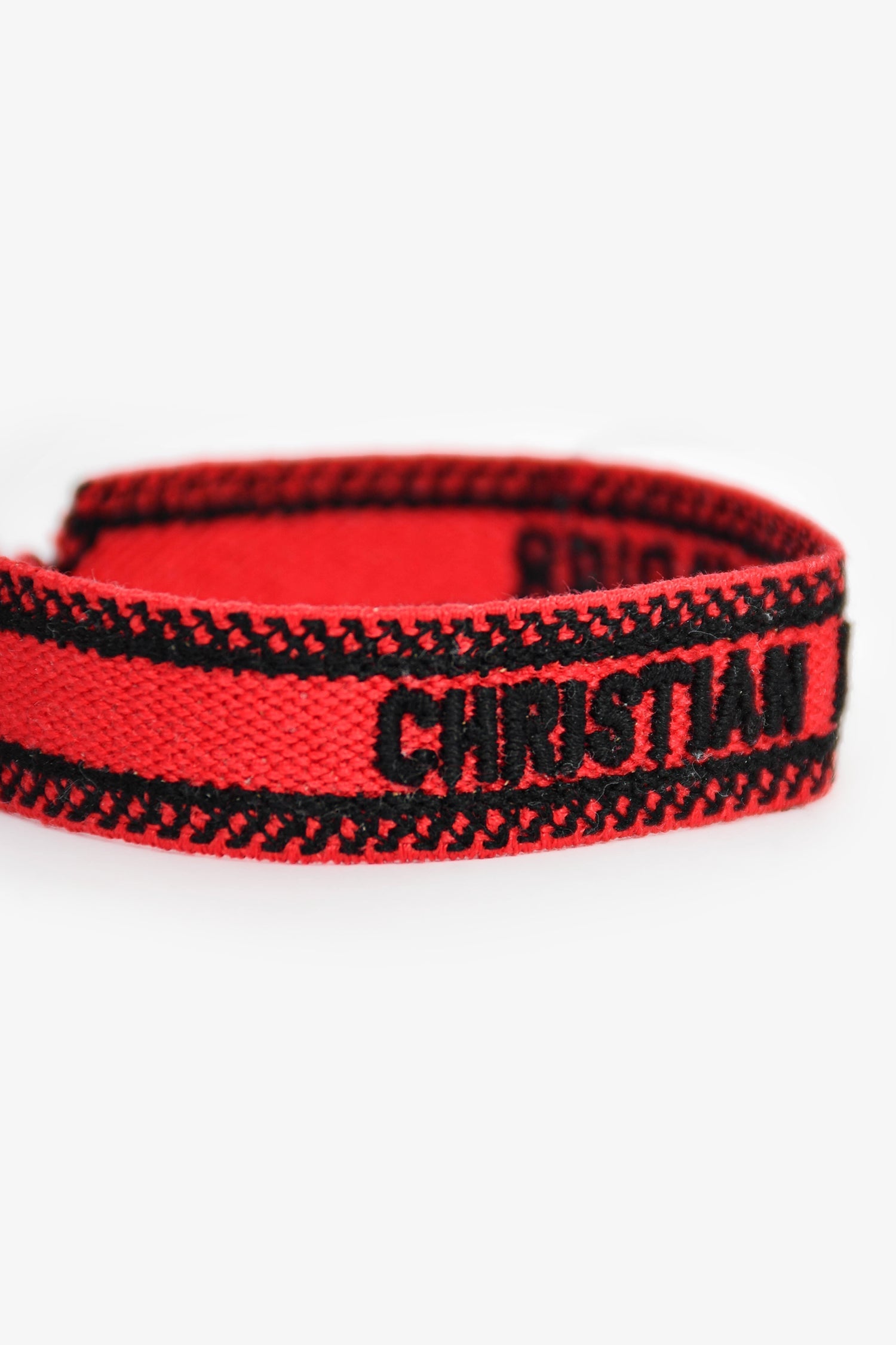 Christian Dior Red 'Friendship' Bracelet. Tonal stitching.