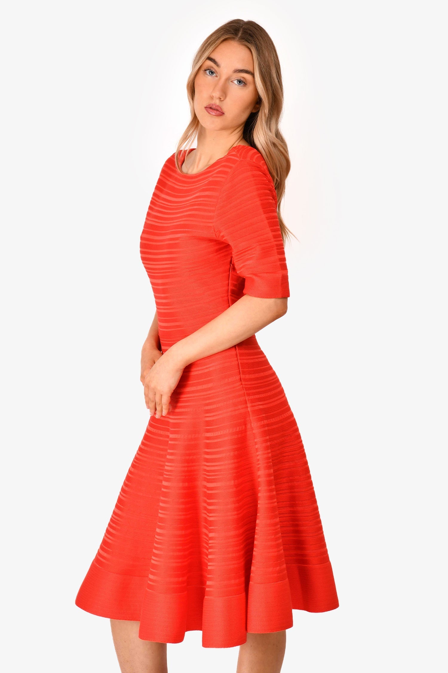 Christian Dior Red Silk Textured Midi Dress Size 6