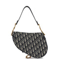 Christian Dior Saddle Bag Navy Blue Oblique Jacquard Antique Gold Hardware