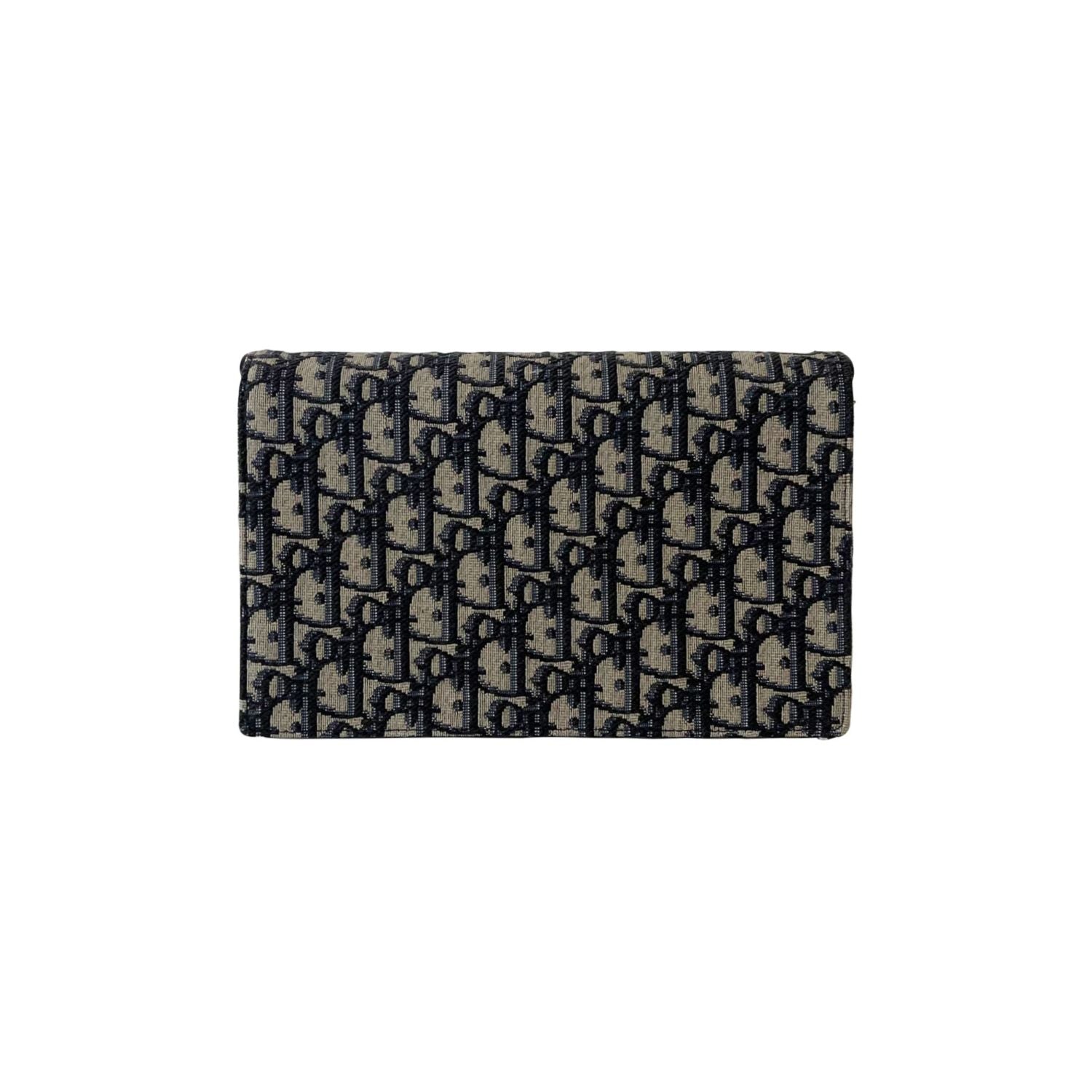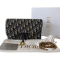 Description: Authentic New Christian Dior Saddle Wallet on Chain in Blue Dior Oblique Jacquard