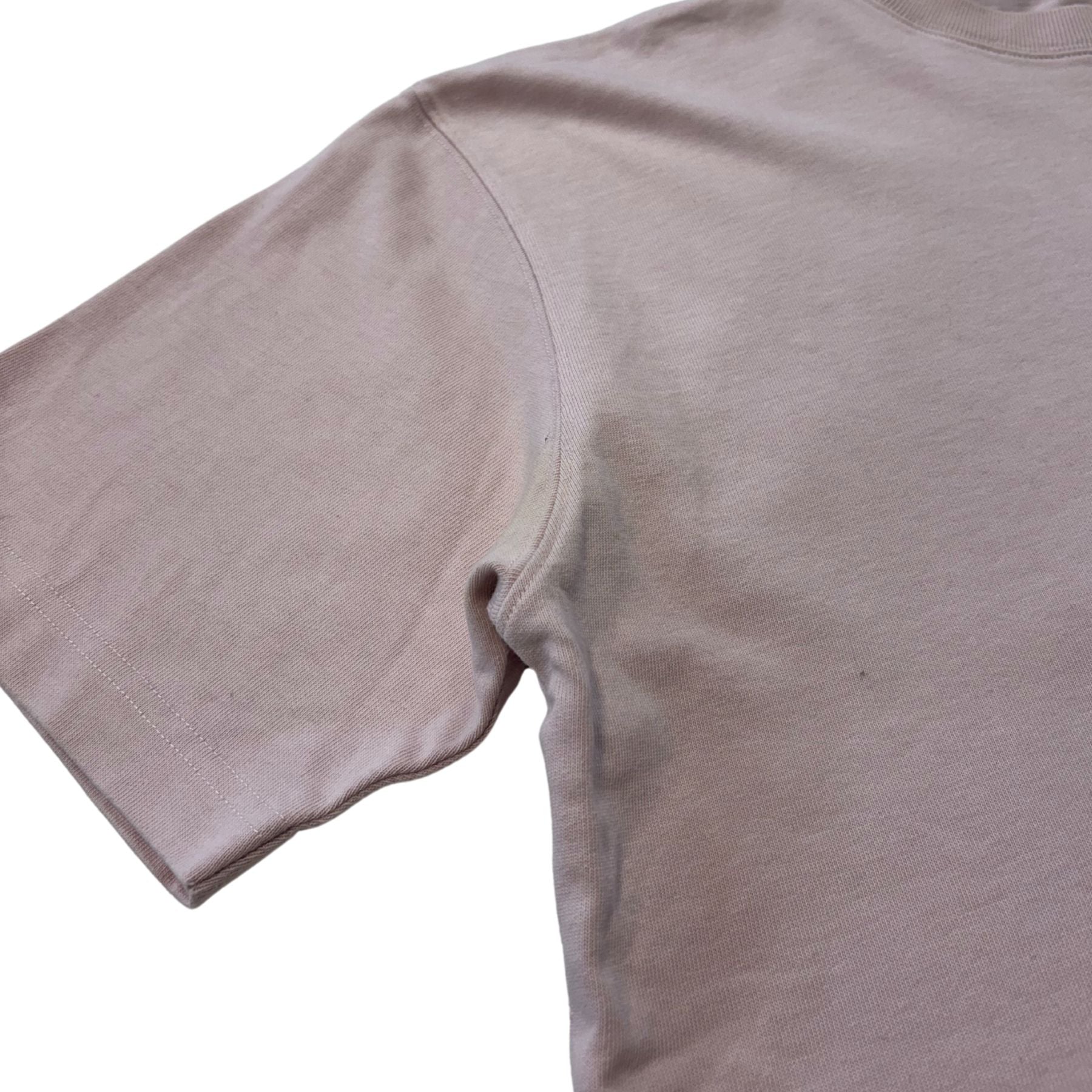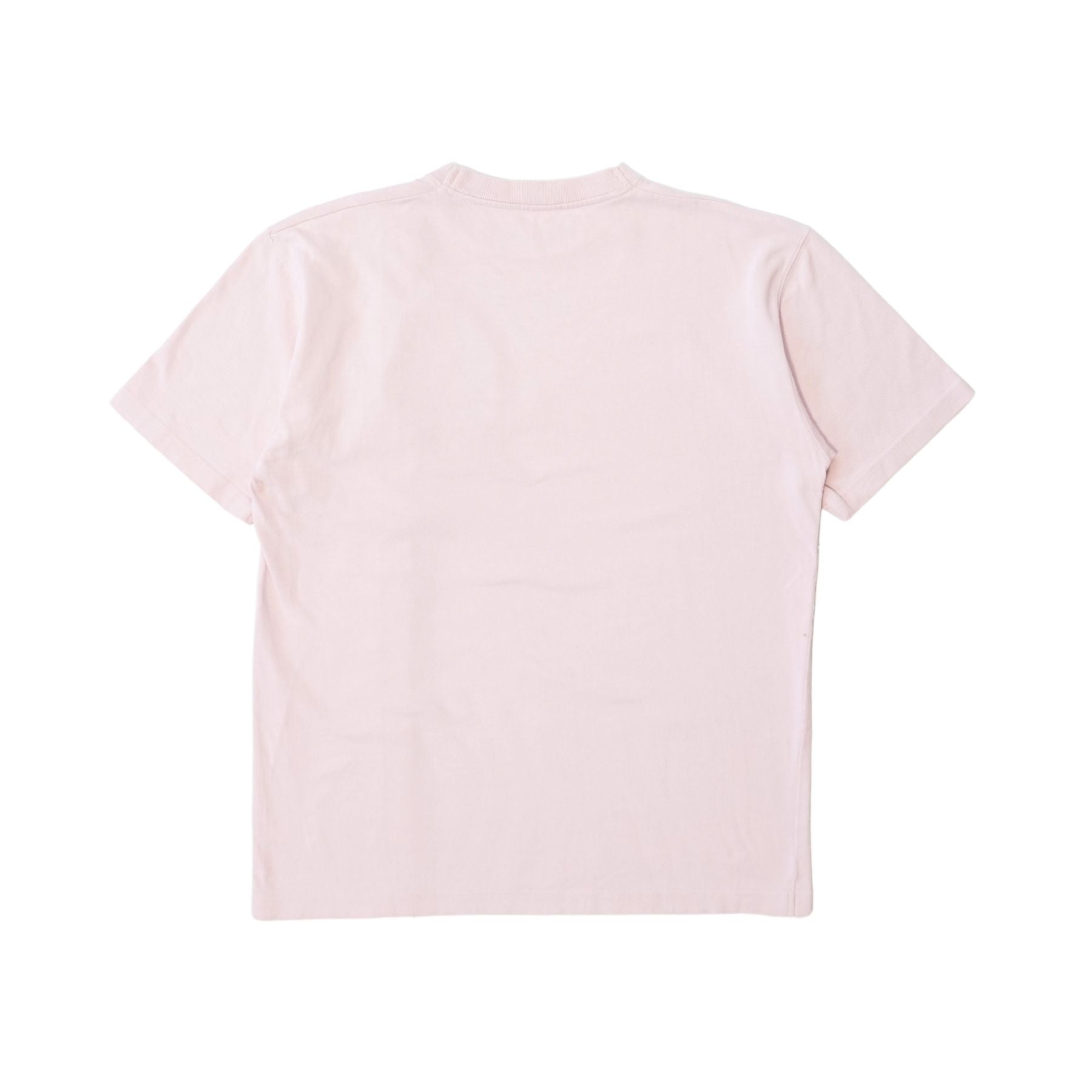 Christian Dior T-Shirt in a light pink with a terry cloth flower decal in blue, pink and green and embroidered 'Dior' in blue on the top front.