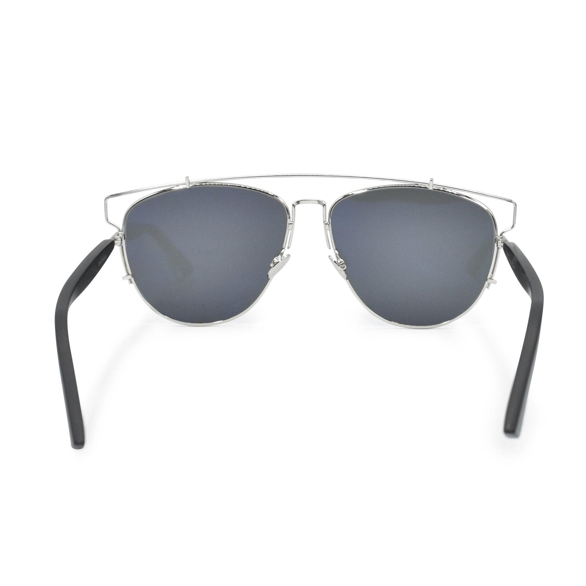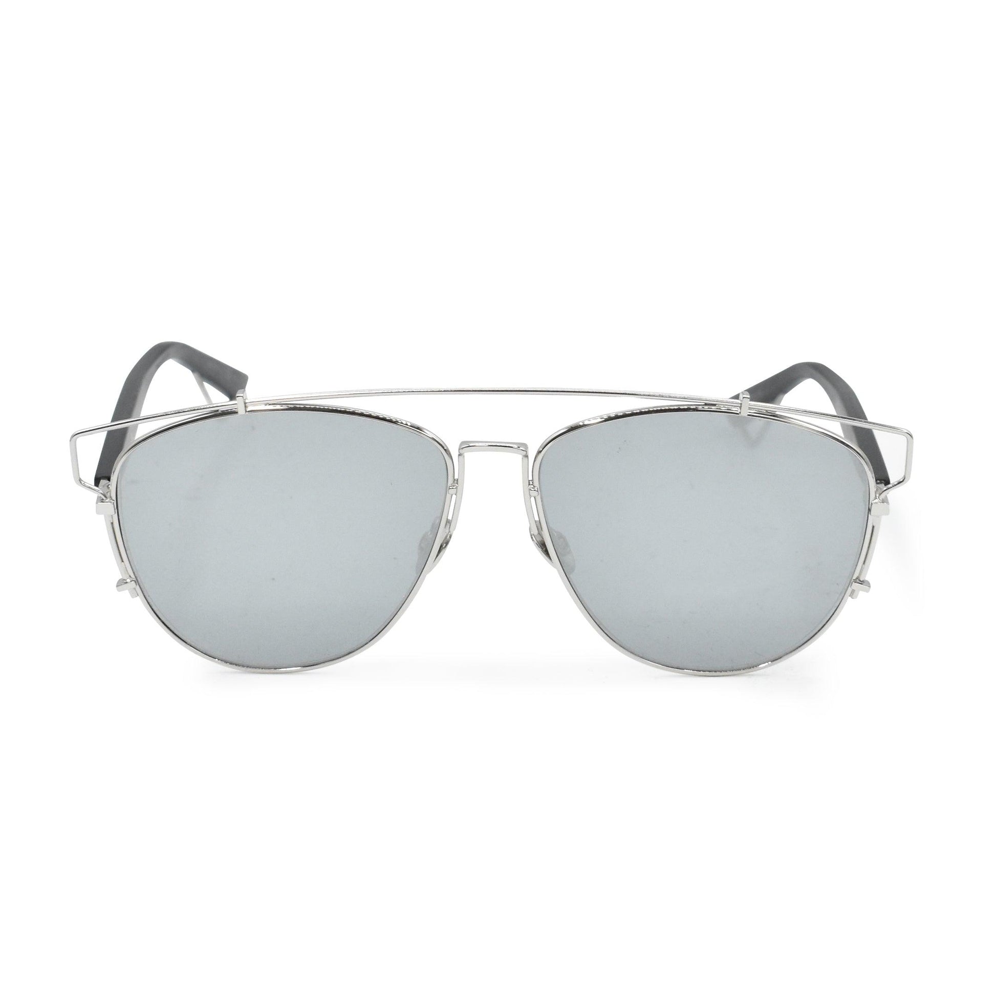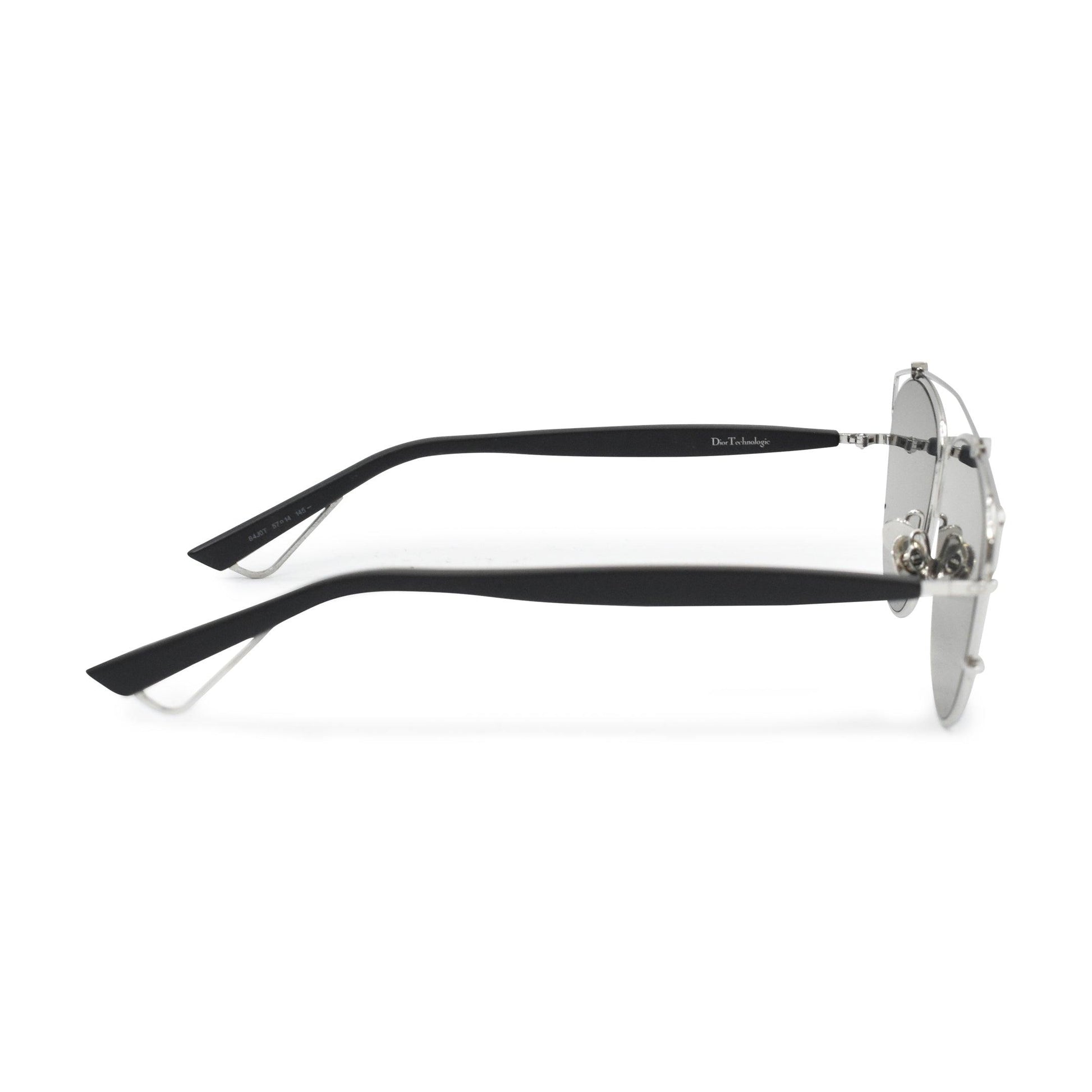 Christian Dior 'Technologic' sunglasses with silver metal frame, black plastic arms, and mirrored lens.