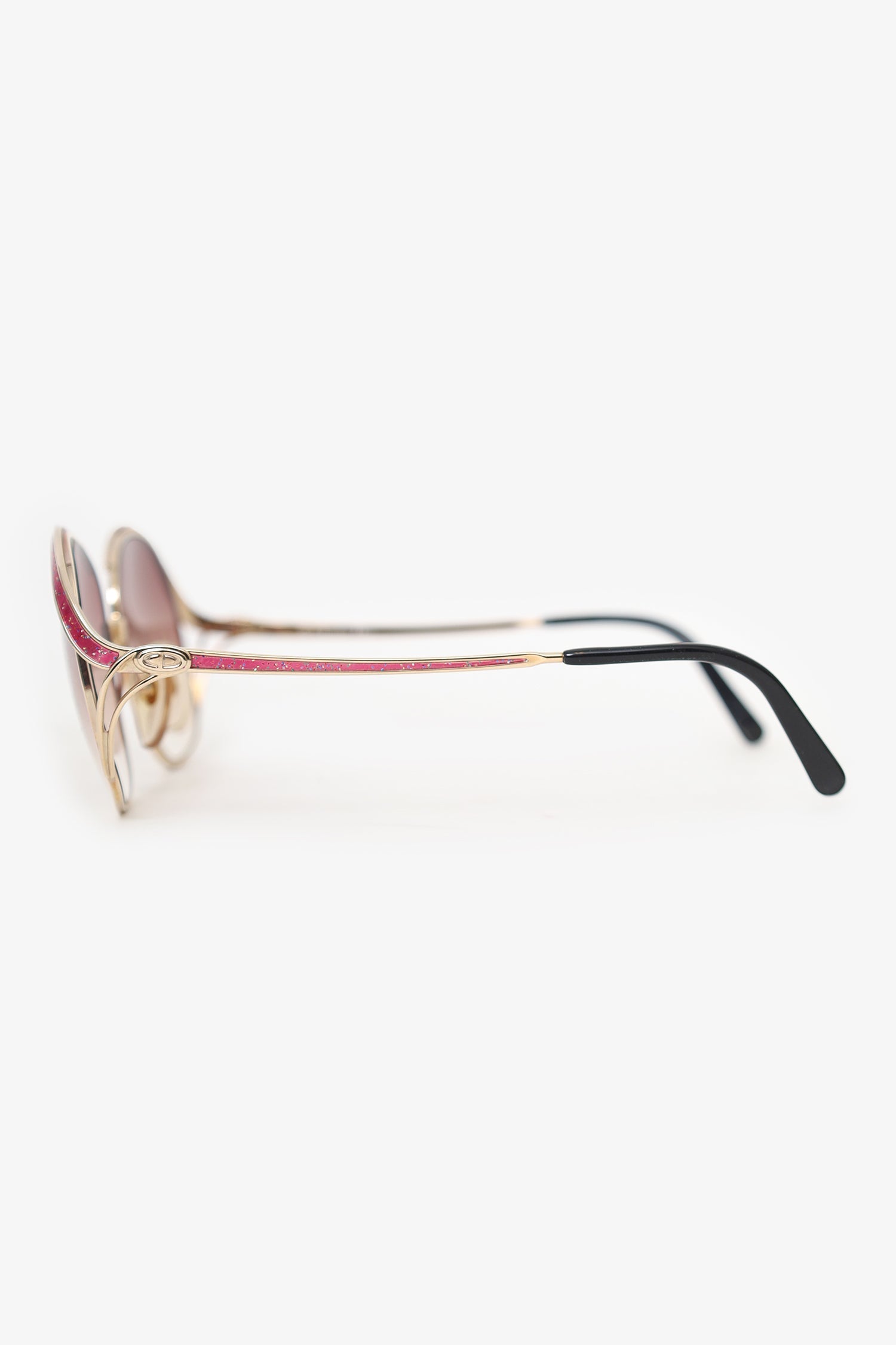 Christian Dior Vintage Gold/Pink Frame Square Sunglasses