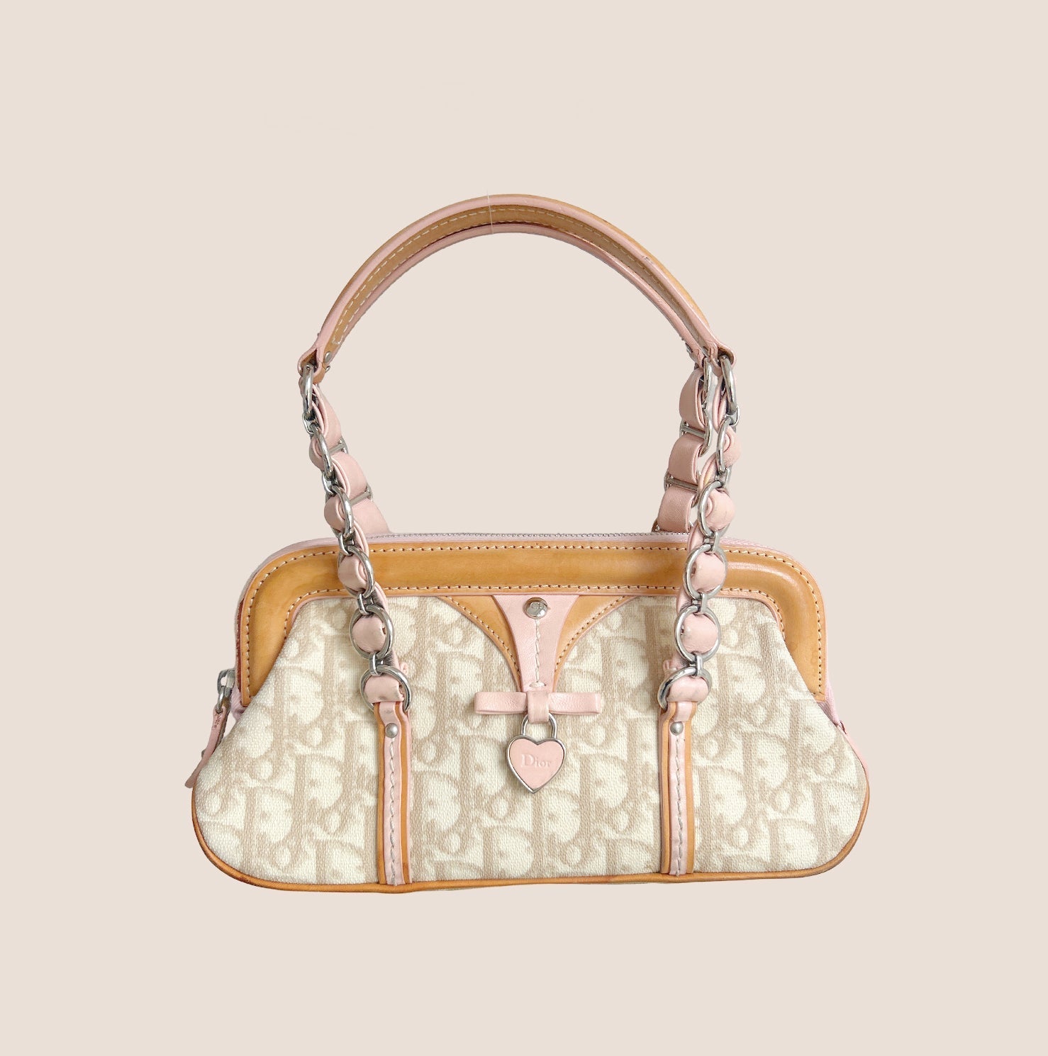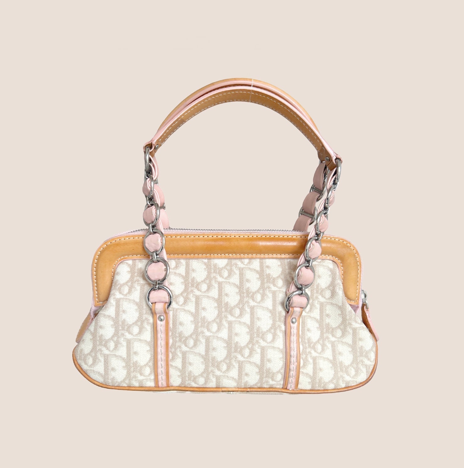 CHRISTIAN DIOR PINK & BEIGE ROMANTIQUE MINI FRAME BAG