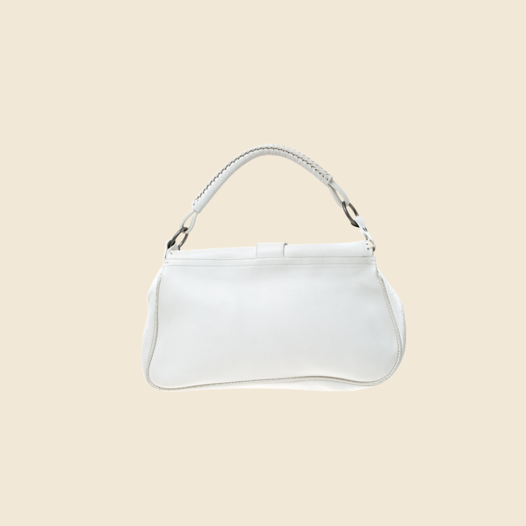 CHRISTIAN DIOR WHITE LEATHER GAUCHO ALPINE SADDLE BAG