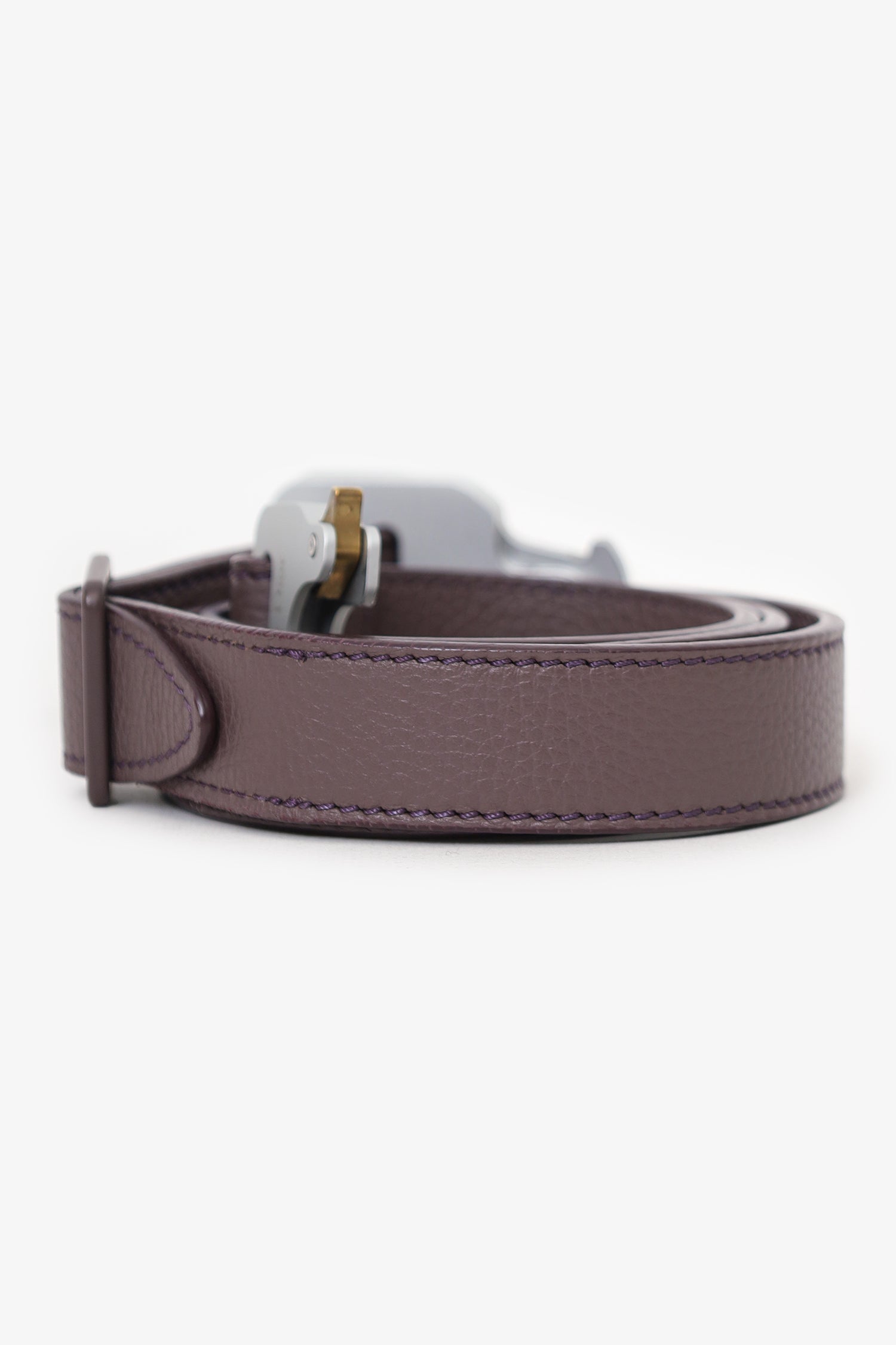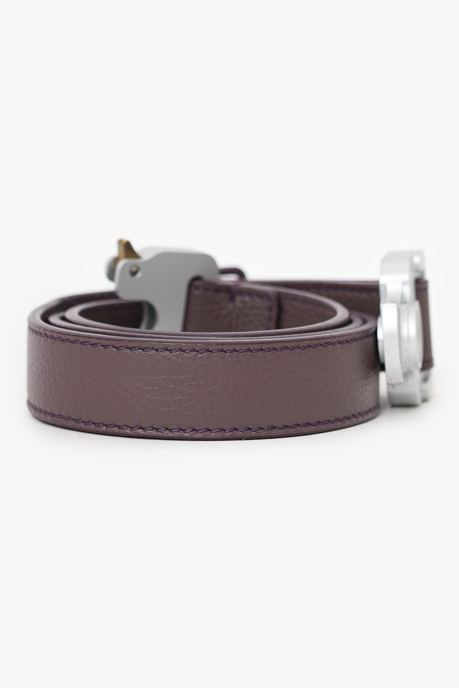 Christian Dior x Alyx Sparrow Calfskin CD 25mm Buckle Belt. Adjustable rollercoaster buckle closure. Tonal stitching. Silver and gold-tone hardware.