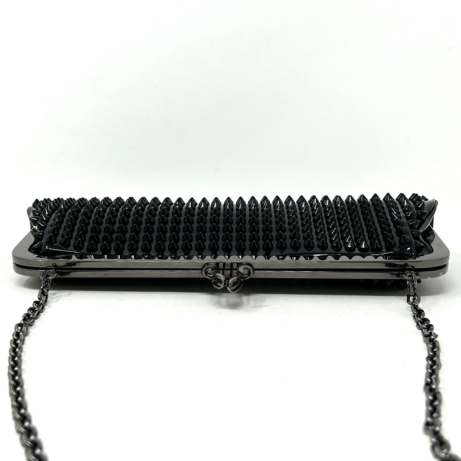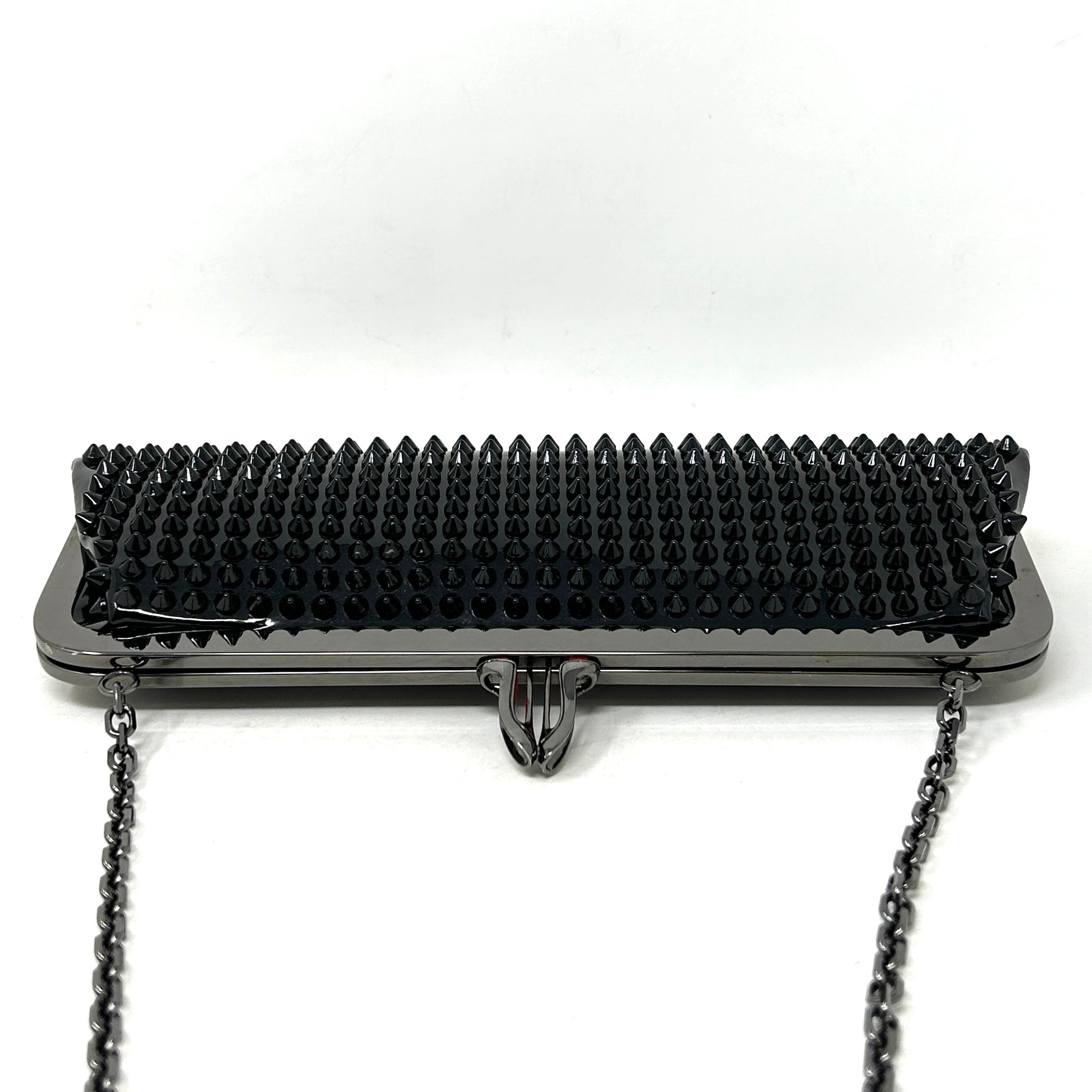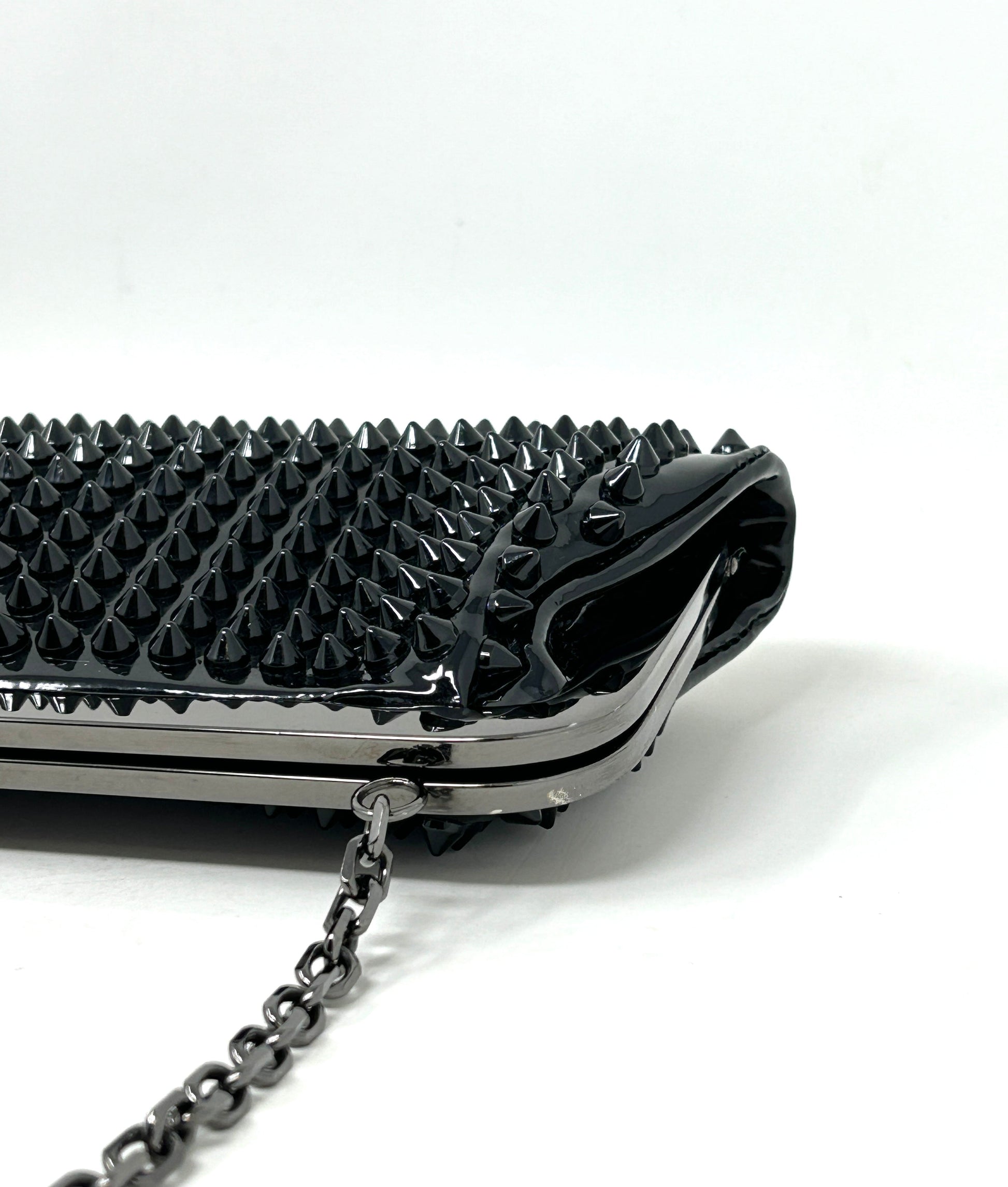 Christian Louboutin Miss Loubi Black Patent Leather Spiked Frame Clutch Bag
