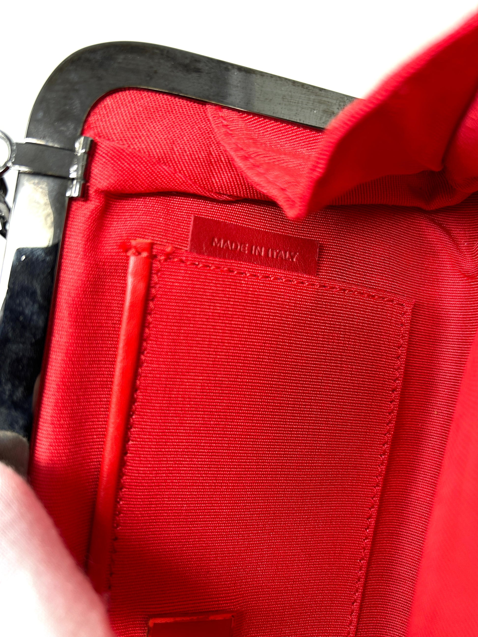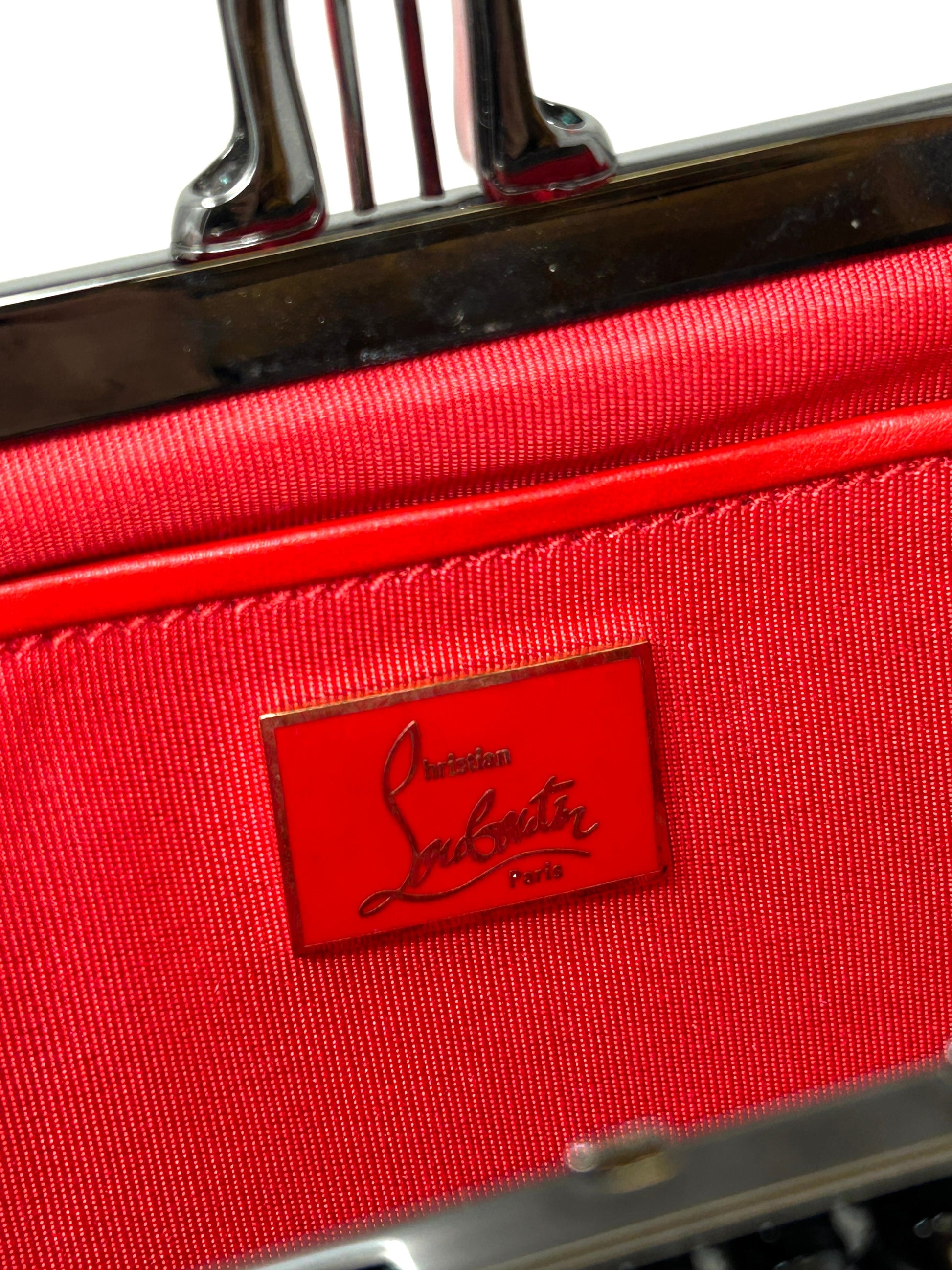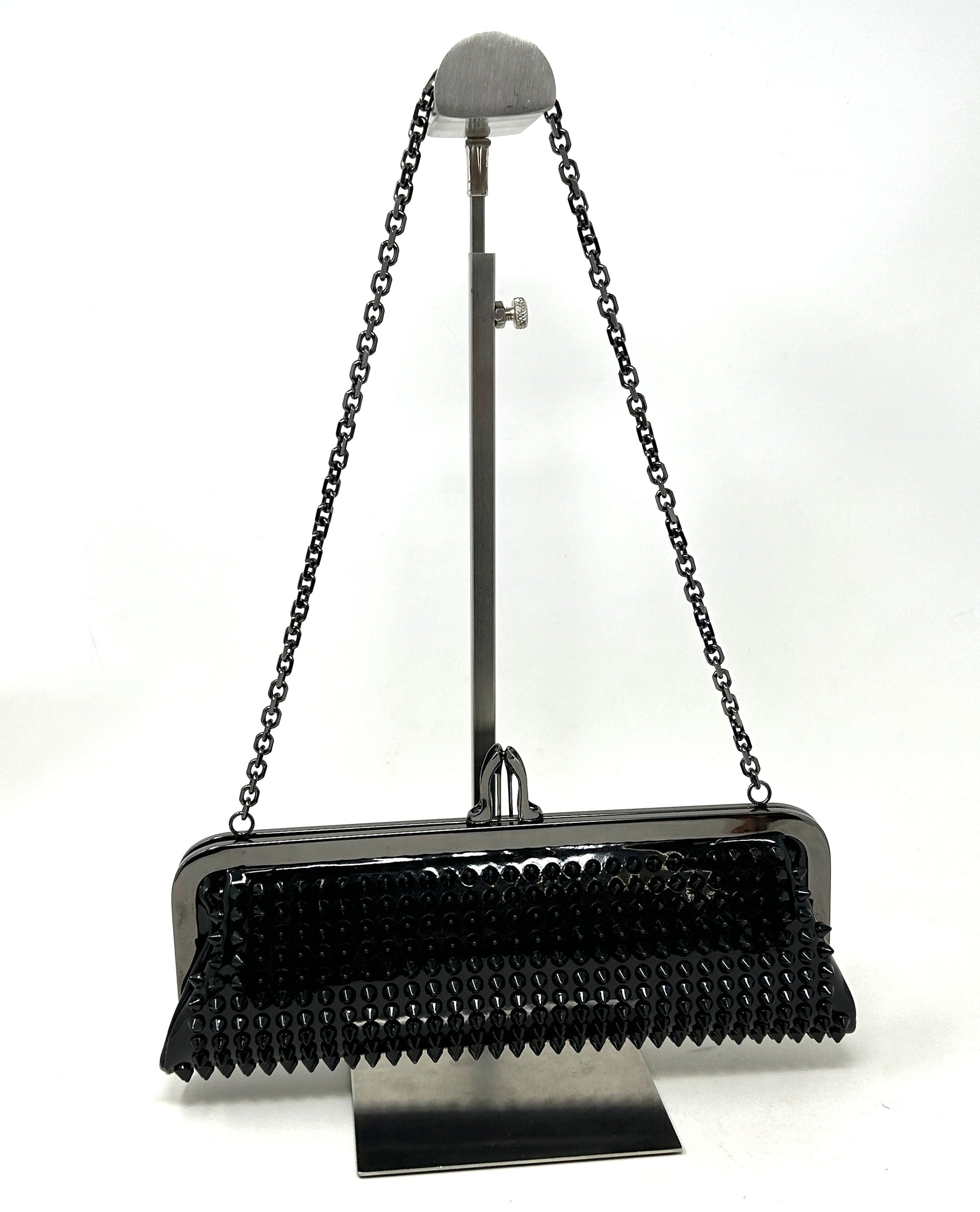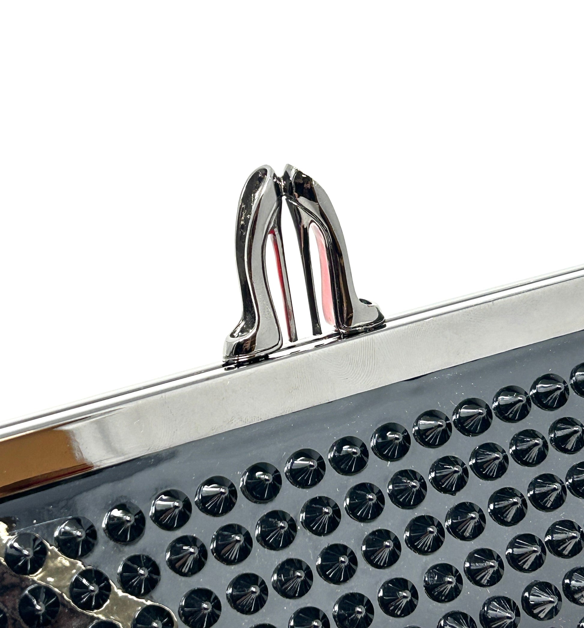 Christian Louboutin Miss Loubi Black Patent Leather Spiked Frame Clutch Bag