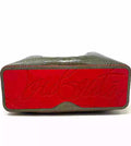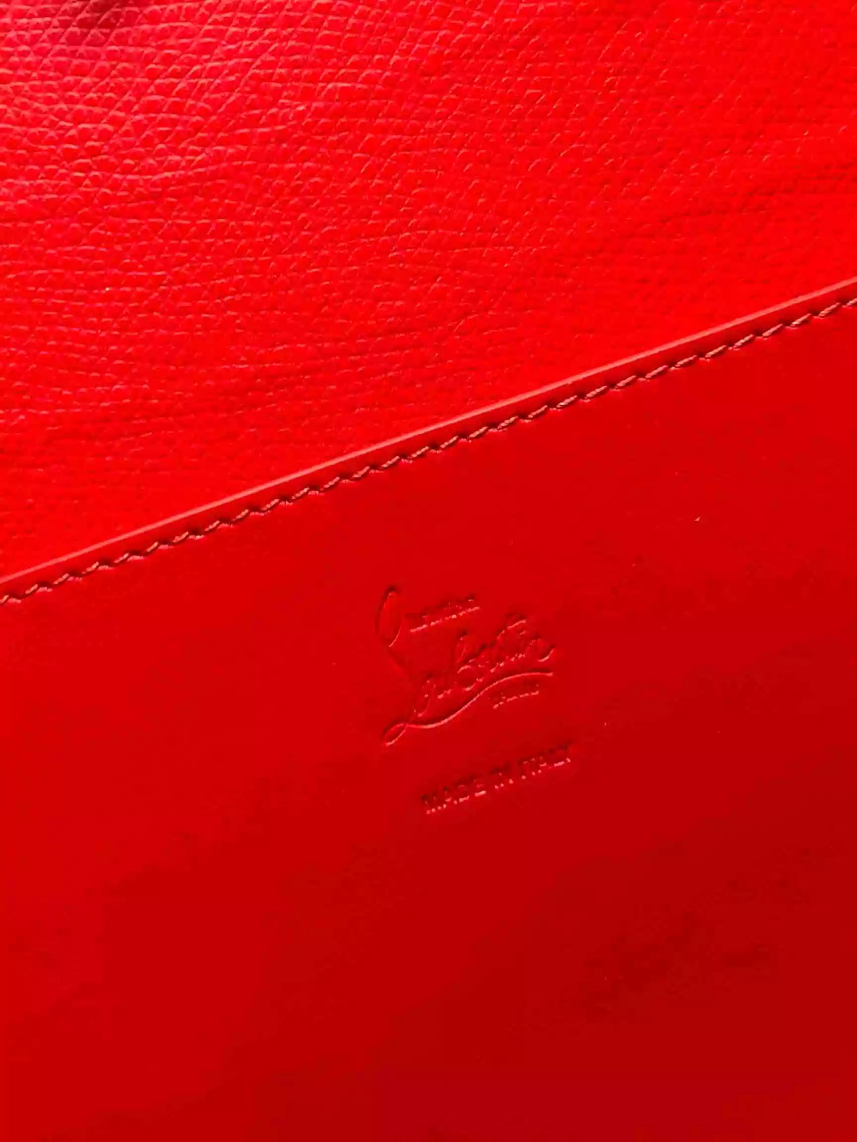 - Interior is crafted from the brand's signature red leather, features one main compartment and a side slip pocket