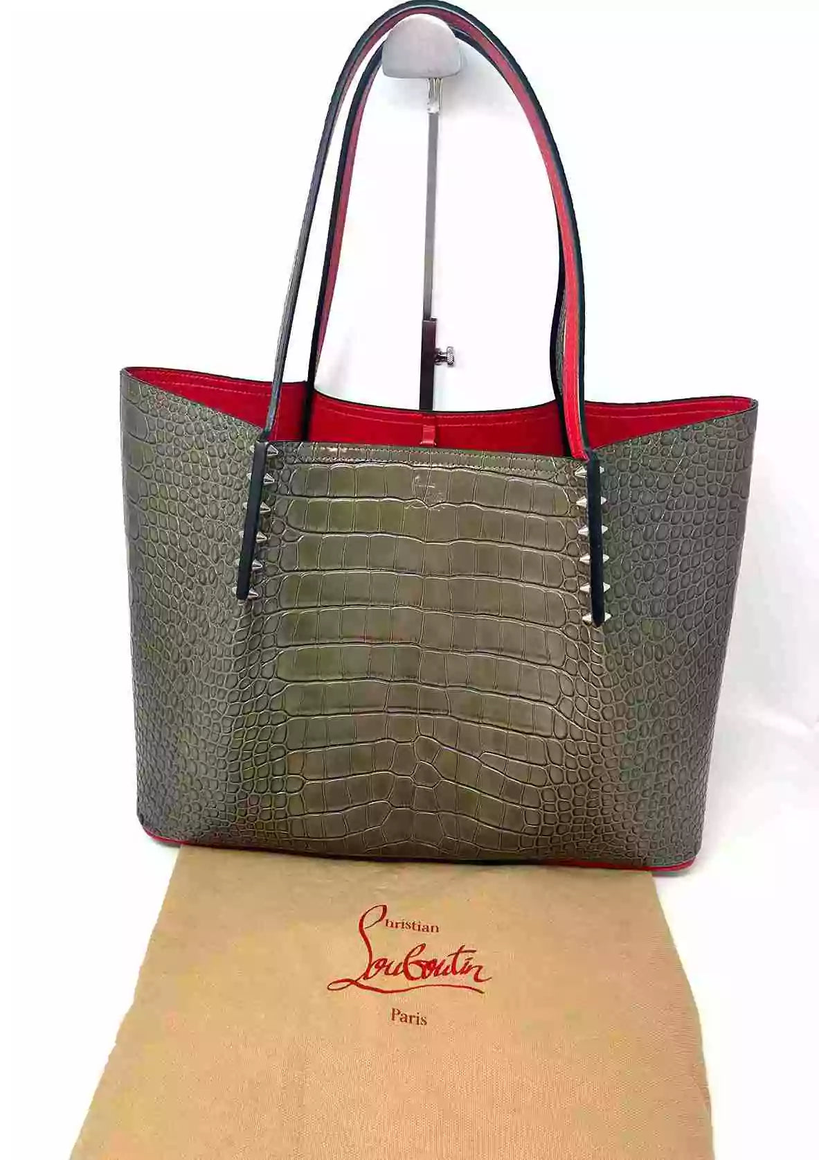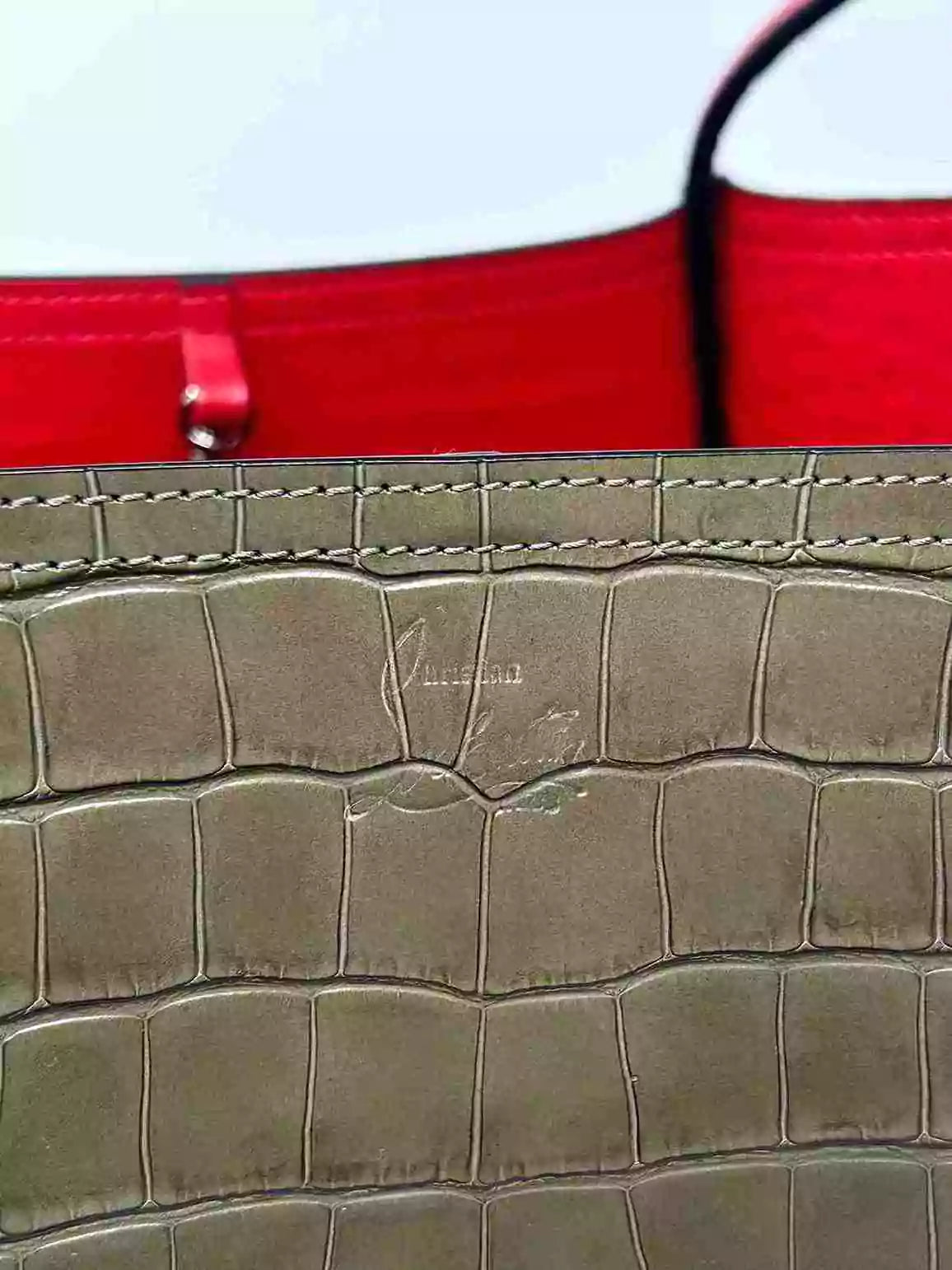 Christian Louboutin Cabarock Crocodile Khaki Leather Tote Bag