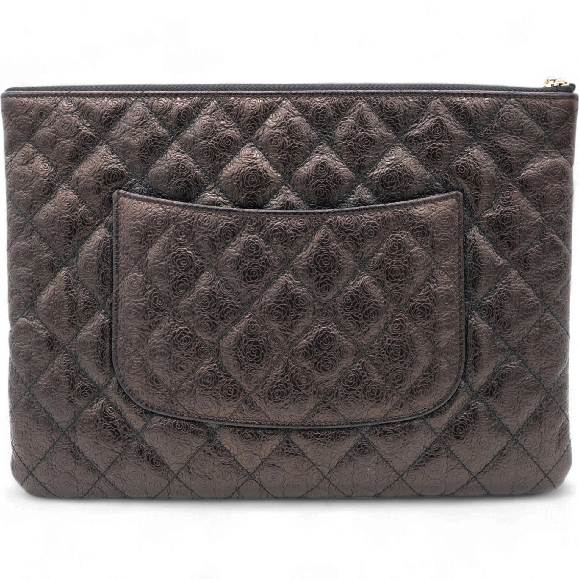 Chanel Classic Calfskin Rose-Embossed Clutch