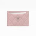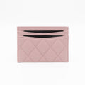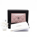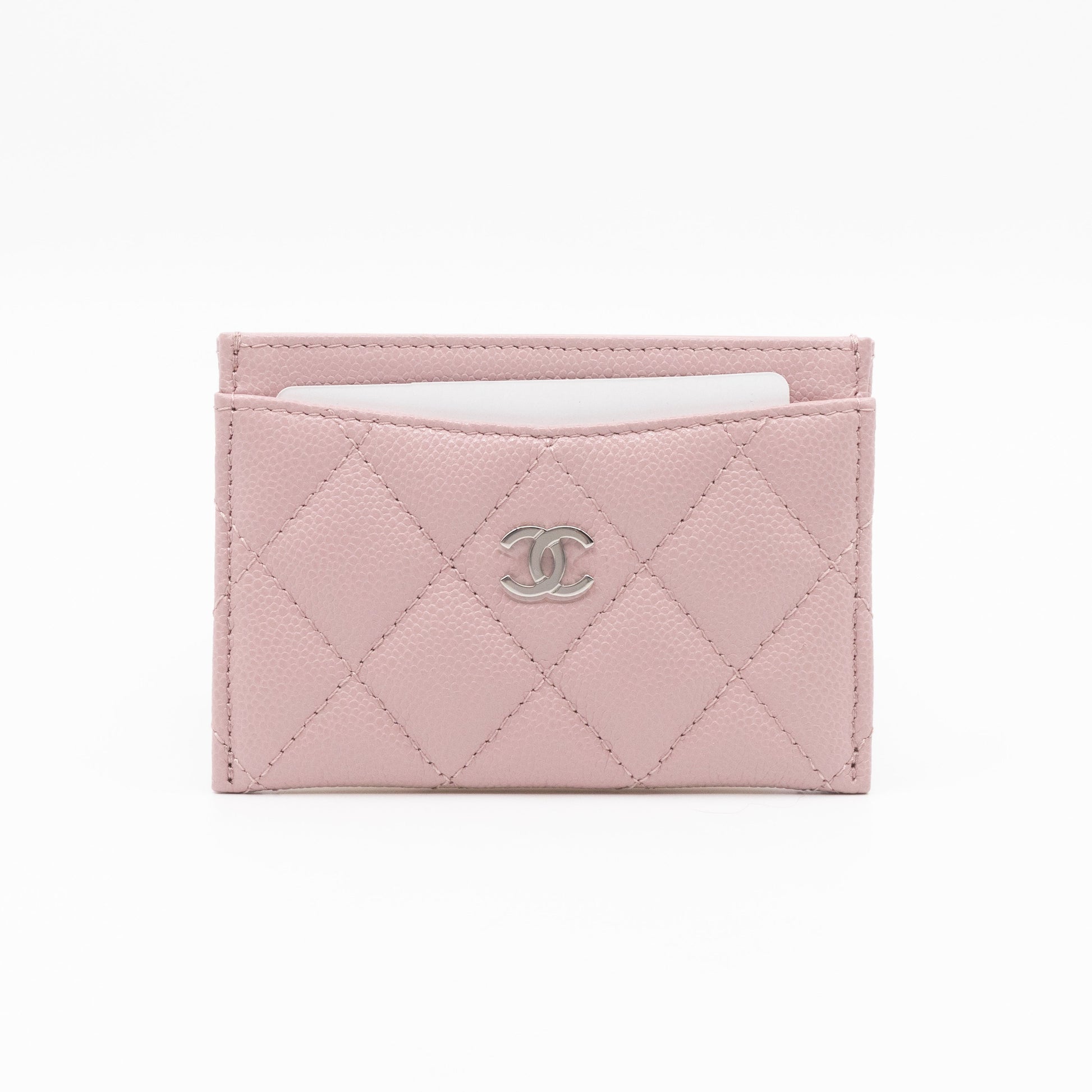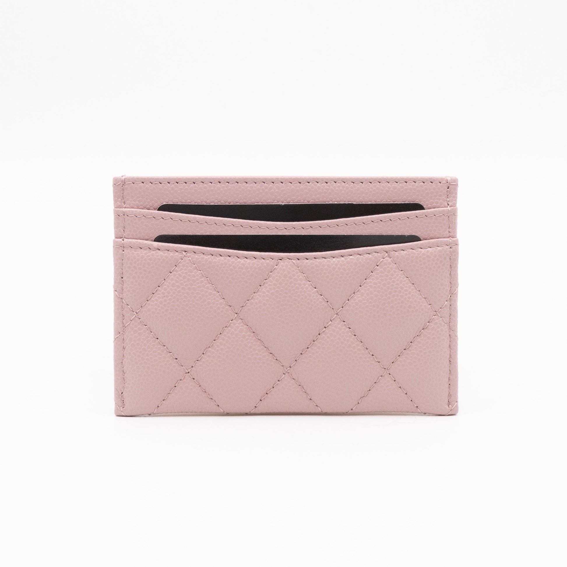 A Classic Card Holder from Chanel. Made with light pink caviarskin leather. Card slots on each sides and a space for few notes in the middle. On the front a CC-logo in light gold metal. Receipt from 2024 and retail price are €470.