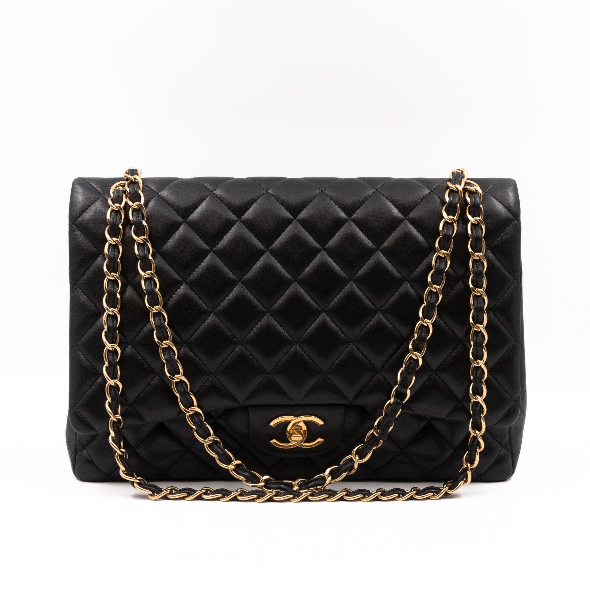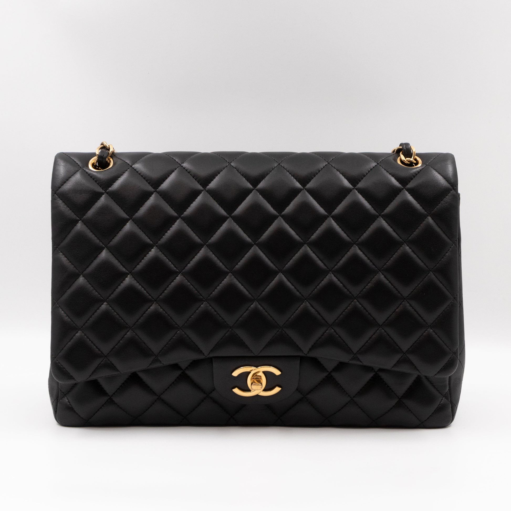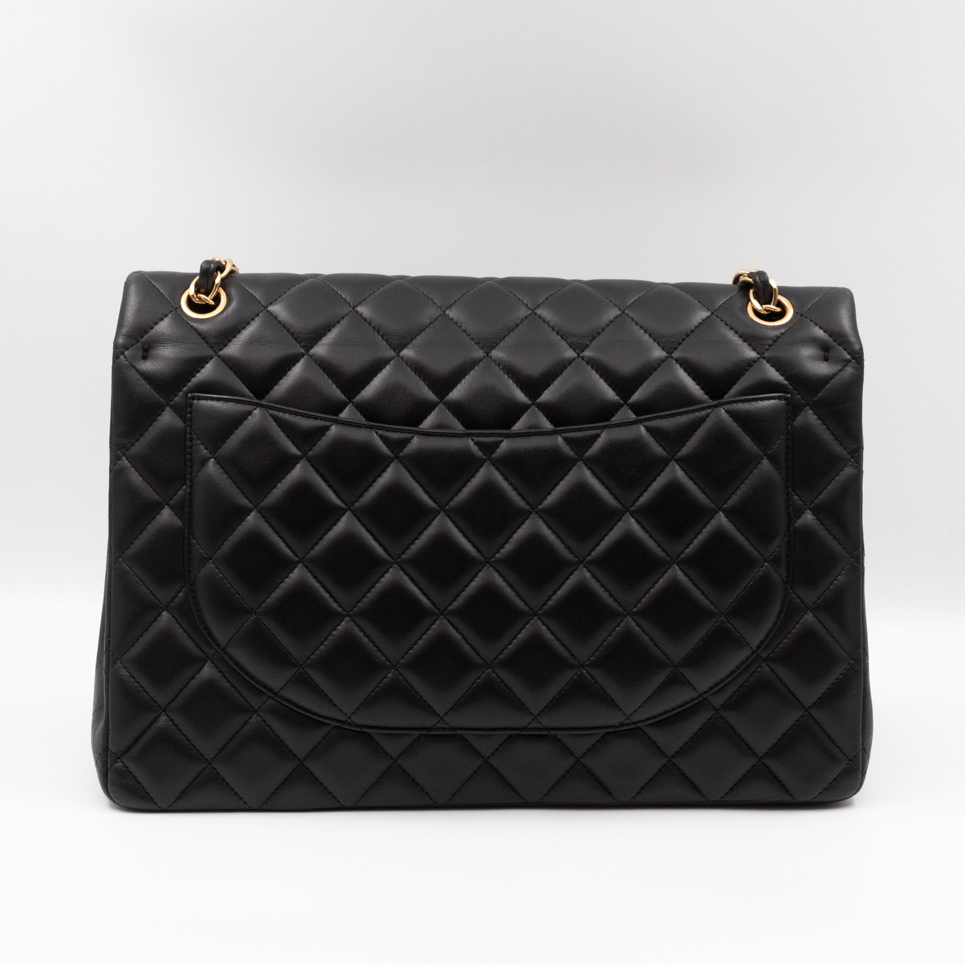 Classic Double Flap Maxi Black Lambskin Leather Gold