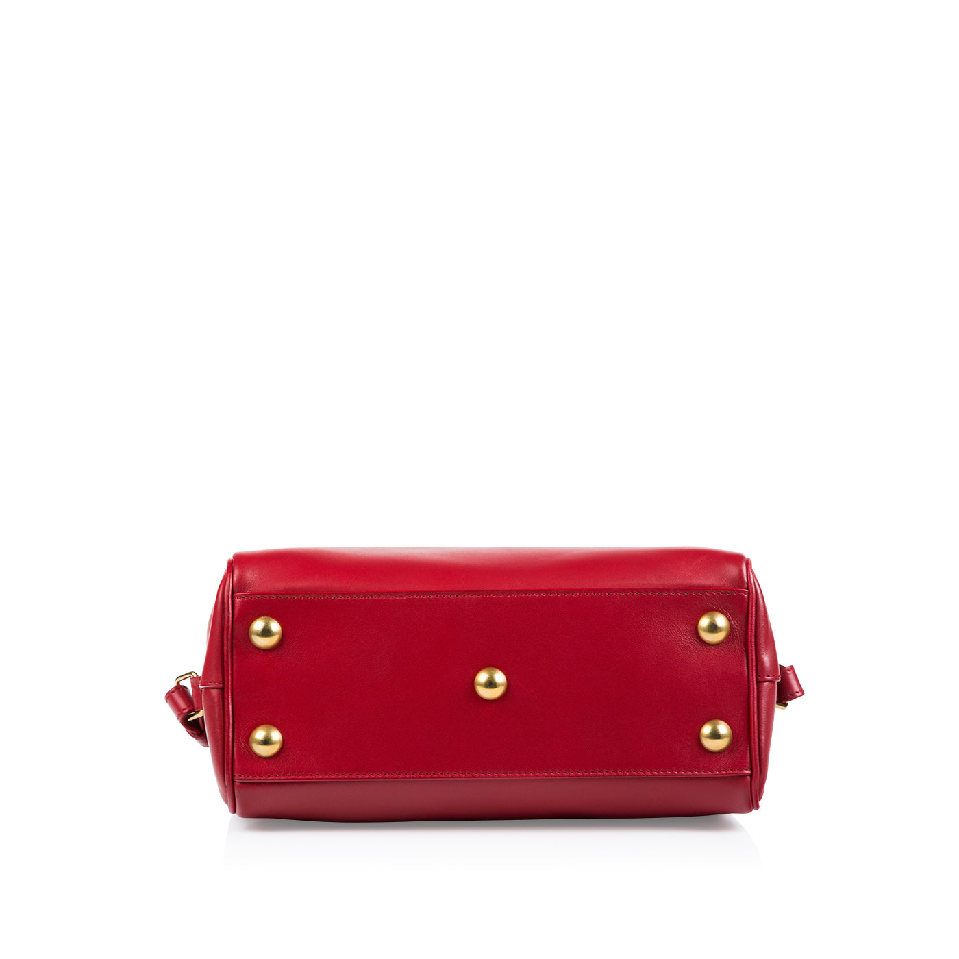 Saint Laurent presents the Classic Duffle 6” Tote, a chic and sporty duffle handbag in a stunning red. Presented in majorelle leather and gold toned hardware, this handbag is ideal for the lady who aspires to achieve a glamorous look without deterring from elegance. The handbag’s interior features a single storage compartment alongside a small slip pocket, presented in decadent red suede. Saint Laurent cleverly sustain versatility through the handbag’s long shoulder strap, allowing you to wear the duffle as a crossbody or detach it to create a more elegant look.