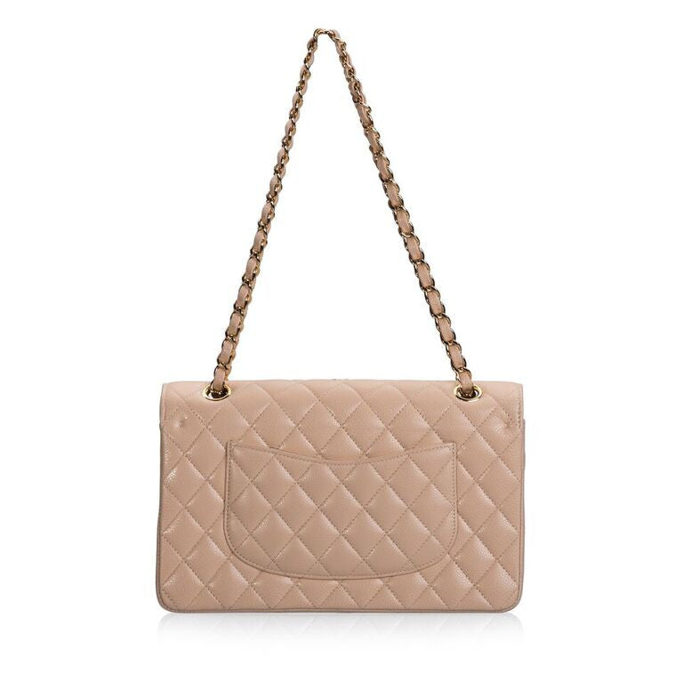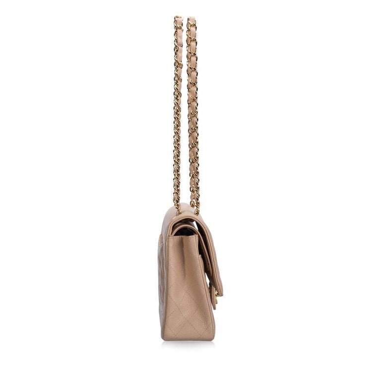 A very chic and rarely found version of this ultimate icon from Chanel - a double flap bag in beige caviar leather with 24kt gold hardware. A firm favourite at Prestige Totes and one of the most wonderfully crafted and styled editions of the iconic bag.