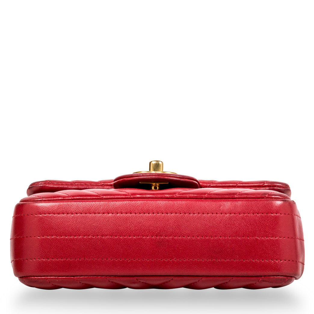 Under the creative direction of Karl Lagerfeld, Chanel continues with its line of classic quilted bags. The elusive extra mini flap bag has landed back in store at Prestige Totes. After proving to be extremely popular, amidst the mini-bag craze, Chanel have re-introduced this super tiny size as part of its classic flap range once again. The chain is interwoven with leather and can be worn on either a single shoulder strap or doubled up. The rich, crimson red hue will be a classy and trendy addition into any wardrobe, and being a Classic flap bag, it can stay in there forever!