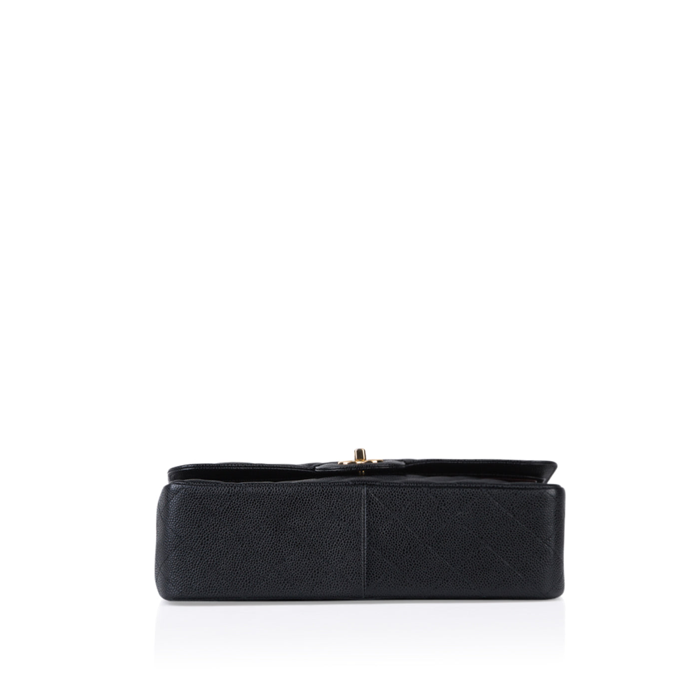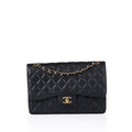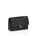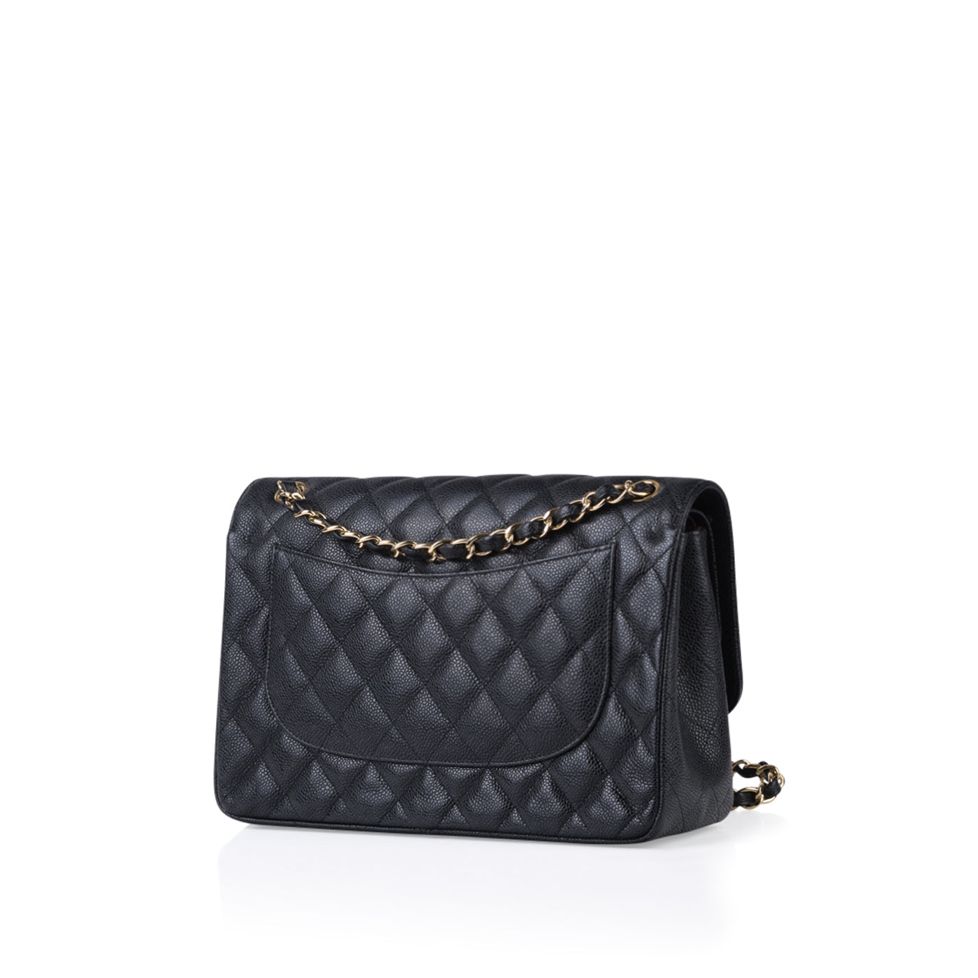 Under the creative direction of Karl Lagerfeld, Chanel continues with its line of classic quilted bags. The enviable Double Flap bag is crafted in Chanel's signature 'Caviar' leather, and detailed with fine stitching and gold hardware. The chain is interwoven with leather and can be worn on either a single shoulder strap or doubled up. The neutral color means this bag fits seamlessly into any wardrobe, and it can stay in there forever! The Classic Flap from Chanel is a true investment piece - especially in it's most coveted colour combination of Black & Gold!