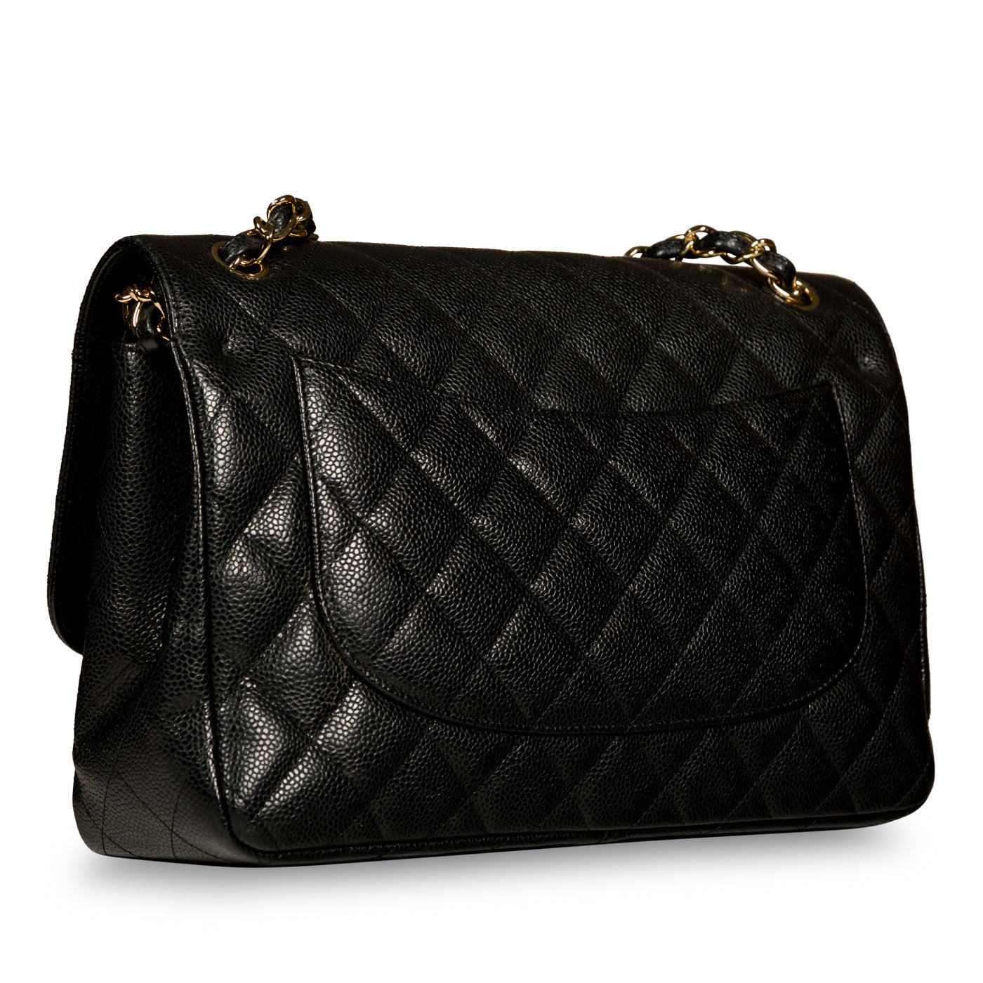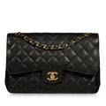 Chanel continues to present its signature line of Classic Flap bags. Under the creative direction of Karl Lagerfeld, the Classic Flap is perhaps the most acclaimed bag in all of fashion history. Timeless, elegant and sophisticated, it's no wonder the Classic Flap is, well, a classic. Featuring its renowned buttery soft lambskin leather and interwoven chain/leather strap, the Jumbo is an absolute must-have in any luxury handbag collection. Not only is this highly coveted, stunning black bag the perfect compliment to pretty much anything you have in your wardrobe, but it's also an investment piece that will never lose its value. Embodying elegance and traditional femininity to a T, a Chanel bag is a purchase you won't ever regret.