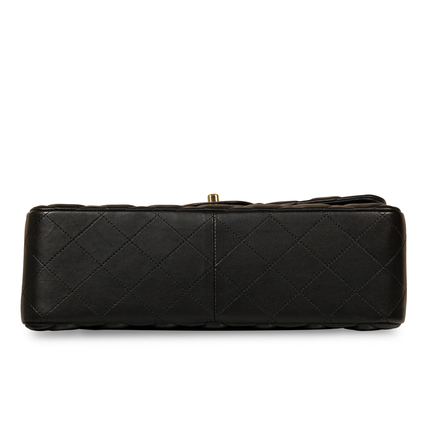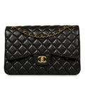 Chanel continues to present its signature line of Classic Flap bags. Under the creative direction of Karl Lagerfeld, the Classic Flap is perhaps the most acclaimed bag in all of fashion history. Timeless, elegant and sophisticated, it's no wonder the Classic Flap is, well, a classic. Featuring its renowned buttery soft lambskin leather and interwoven chain/leather strap, the Jumbo is an absolute must-have in any luxury handbag collection. Not only is this highly coveted, stunning black bag the perfect compliment to pretty much anything you have in your wardrobe, but it's also an investment piece that will never lose its value. Embodying elegance and traditional femininity to a T, a Chanel bag is a purchase you won't ever regret.