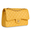 The Classic Flap bag we all know and love takes a more luxurious turn than we thought possible with this one. I mean, look at her. Look at how bright she shines. She's effortless. She's captivating. Wow... Okay you get the point. This stunning Chanel Classic Flap is nothing short of exquisite. It's safe to say that this particular model embodies unique and opulence to a T. Crafted from smooth sunshine yellow lambskin leather and champagne gold tone hardware, this timeless piece is one every woman needs in her handbag collection. There's a reason why the Classic Flap is, well, a classic. It's an investment piece that won't lose its value, it's one you'll love and wear forever and one you'll never get bored of. I mean, how could you ever tire of something as beautiful as this?