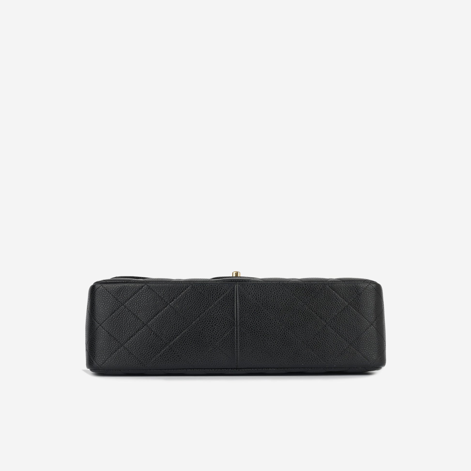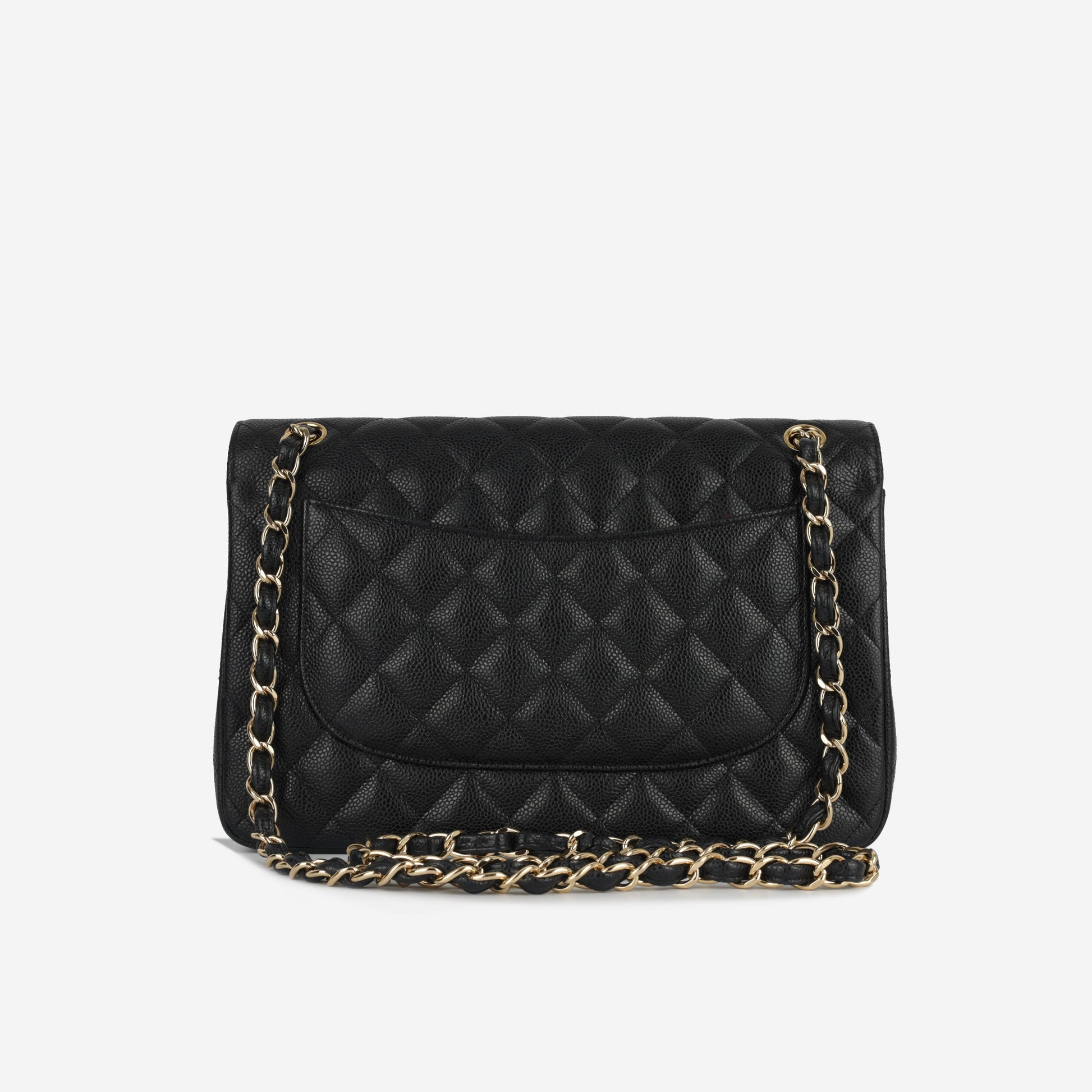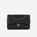 Chanel continues to present its signature line of Classic Flap bags. Under the creative direction of Karl Lagerfeld, the Classic Flap is perhaps the most acclaimed bag in all of fashion history. Timeless, elegant and sophisticated, it's no wonder the Classic Flap is, well, a classic. Featuring its infamous quilted caviar leather and interwoven chain / leather strap, the Jumbo is an absolute must-have in any luxury handbag collection. Not only is this highly coveted, stunning black bag the perfect compliment to pretty much anything you have in your wardrobe, but it's also an investment piece that will never lose its value.