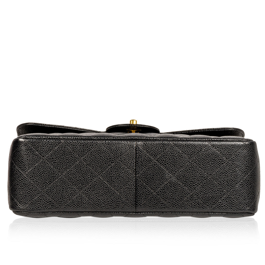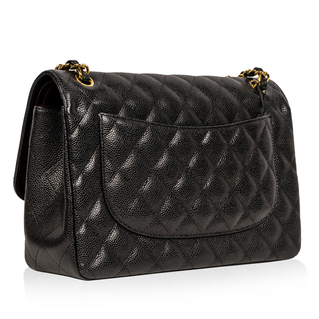 Chanel continues to present its signature line of Classic Flap bags. Under the creative direction of Karl Lagerfeld, the Classic Flap is perhaps the most acclaimed bag in all of fashion history. Timeless, elegant and sophisticated, it's no wonder the Classic Flap is, well, a classic. Featuring its infamous quilted caviar leather and interwoven chain / leather strap, the Jumbo is an absolute must-have in any luxury handbag collection. Not only is this highly coveted, stunning black bag the perfect compliment to pretty much anything you have in your wardrobe, but it's also an investment piece that will never lose its value. Embodying elegance and traditional femininity to a T, a Chanel bag is a purchase you won't ever regret.