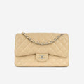Chanel continues to present its signature line of Classic Flap bags. Under the creative direction of Karl Lagerfeld, the Classic Flap is perhaps the most acclaimed bag in all of fashion history. Timeless, elegant and sophisticated, it's no wonder the Classic Flap is, well, a classic. Featuring its infamous quilted caviar leather and interwoven chain / leather strap, the Jumbo is an absolute must-have in any luxury handbag collection. Not only is this highly coveted, stunning black bag the perfect compliment to pretty much anything you have in your wardrobe, but it's also an investment piece that will never lose its value.
