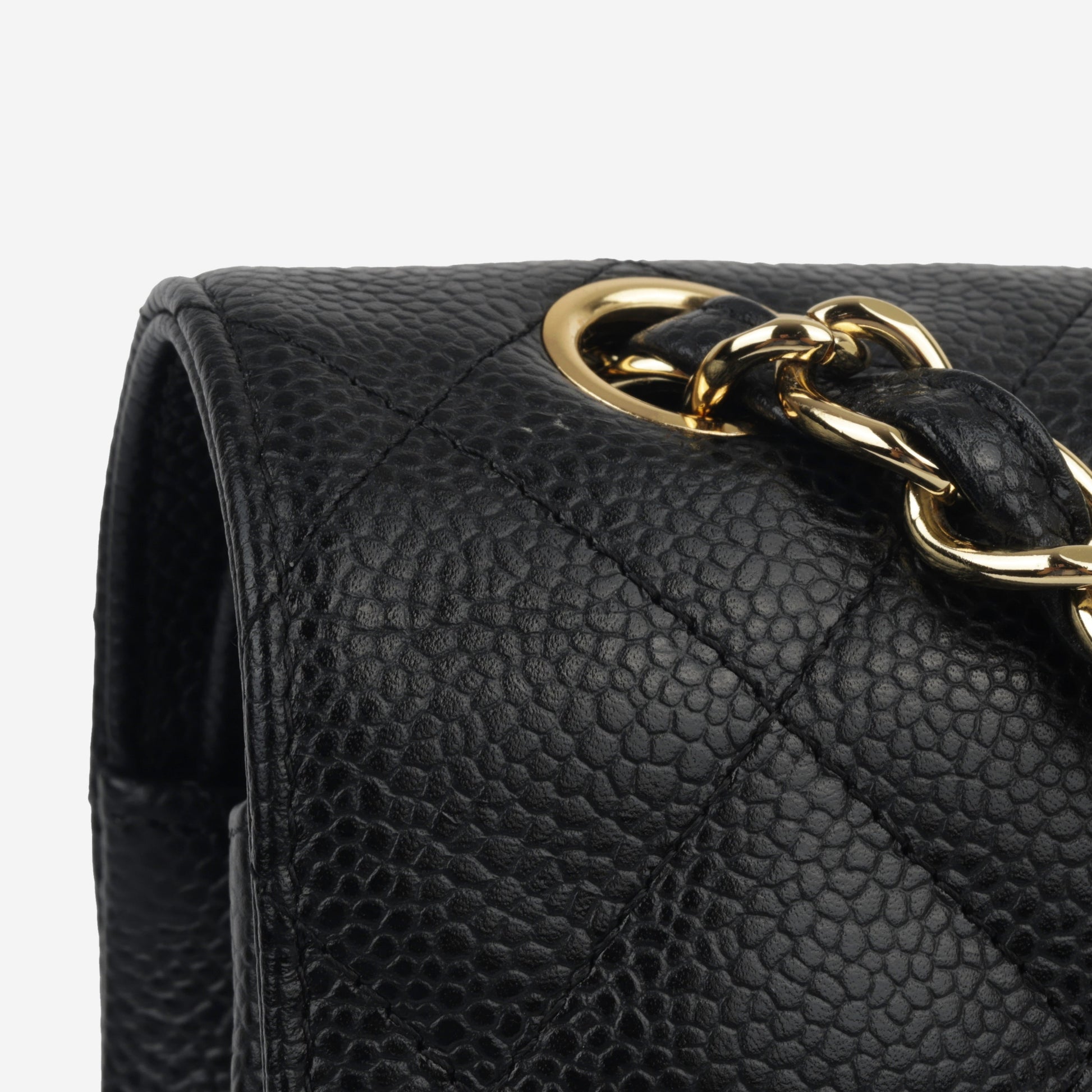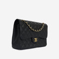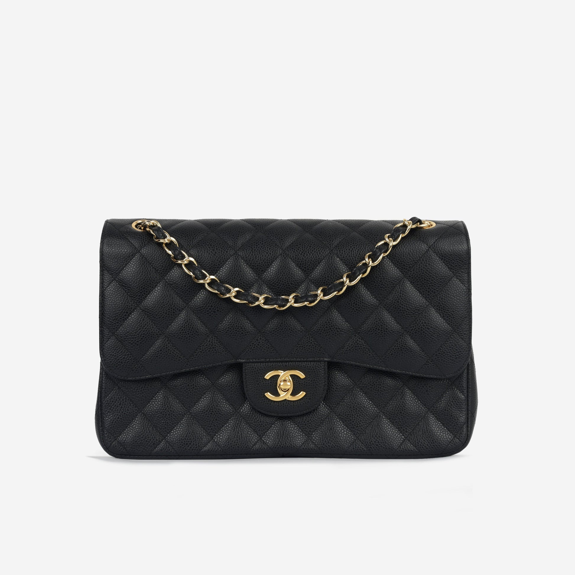 Chanel continues to present its signature line of Classic Flap bags. Under the creative direction of Karl Lagerfeld, the Classic Flap is perhaps the most acclaimed bag in all of fashion history. Timeless, elegant and sophisticated, it's no wonder the Classic Flap is, well, a classic. Featuring its infamous quilted caviar leather and interwoven chain / leather strap, the Jumbo is an absolute must-have in any luxury handbag collection. Not only is this highly coveted, stunning black bag the perfect compliment to pretty much anything you have in your wardrobe, but it's also an investment piece that will never lose its value.
