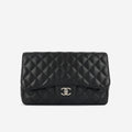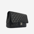 Chanel continues to present its signature line of Classic Flap bags. Under the creative direction of Karl Lagerfeld, the Classic Flap is perhaps the most acclaimed bag in all of fashion history. Timeless, elegant and sophisticated, it's no wonder the Classic Flap is, well, a classic. Featuring its infamous quilted caviar leather and interwoven chain / leather strap, the Jumbo is an absolute must-have in any luxury handbag collection. Not only is this highly coveted, stunning black bag the perfect compliment to pretty much anything you have in your wardrobe, but it's also an investment piece that will never lose its value.