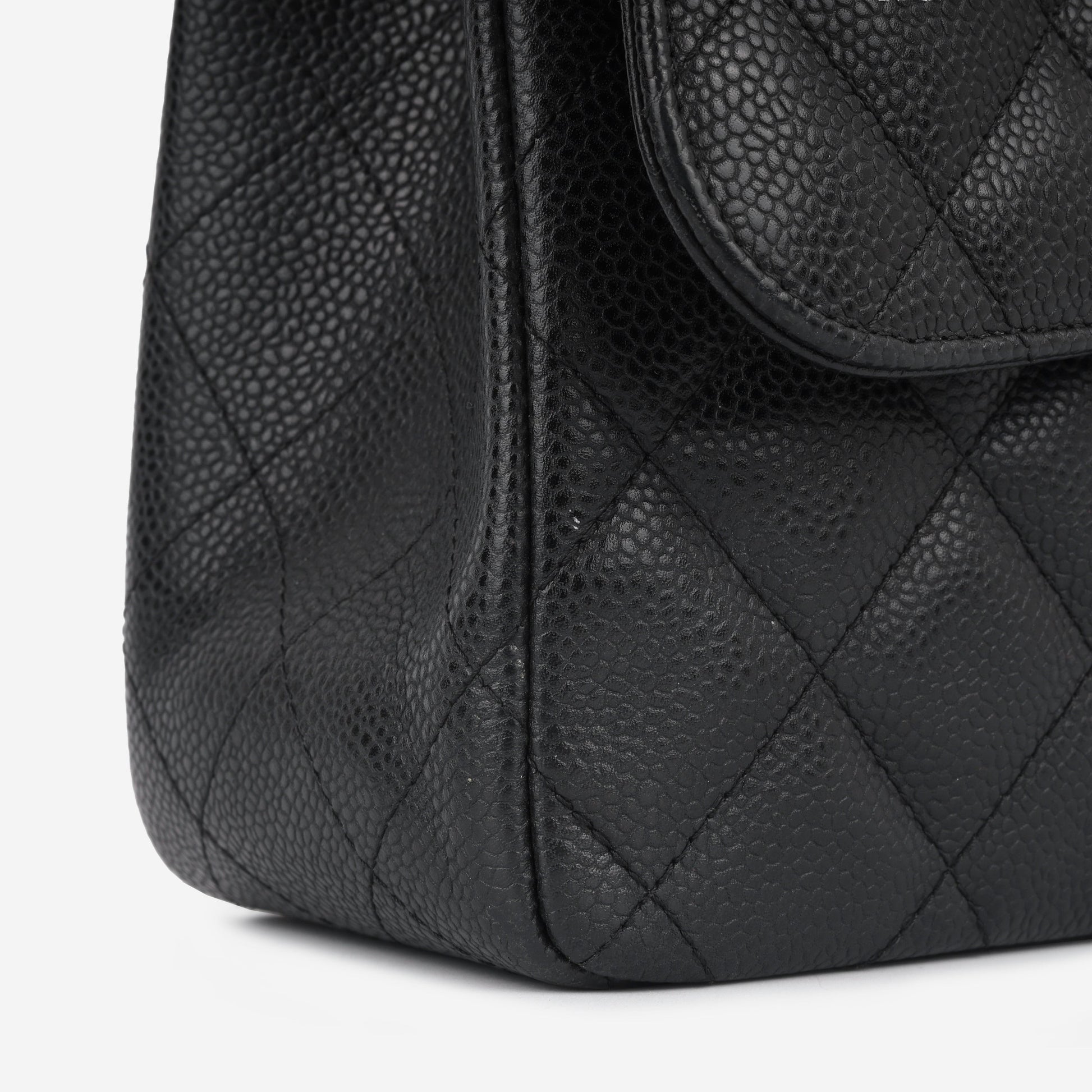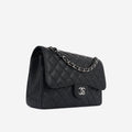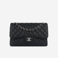 Chanel continues to present its signature line of Classic Flap bags. Under the creative direction of Karl Lagerfeld, the Classic Flap is perhaps the most acclaimed bag in all of fashion history. Timeless, elegant and sophisticated, it's no wonder the Classic Flap is, well, a classic. Featuring its infamous quilted caviar leather and interwoven chain / leather strap, the Jumbo is an absolute must-have in any luxury handbag collection. Not only is this highly coveted, stunning black bag the perfect compliment to pretty much anything you have in your wardrobe, but it's also an investment piece that will never lose its value.