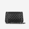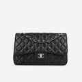 Chanel continues to present its signature line of Classic Flap bags. Under the creative direction of Karl Lagerfeld, the Classic Flap is perhaps the most acclaimed bag in all of fashion history. Timeless, elegant and sophisticated, it's no wonder the Classic Flap is, well, a classic. Featuring its infamous quilted caviar leather and interwoven chain / leather strap, the Jumbo is an absolute must-have in any luxury handbag collection. Not only is this highly coveted, stunning black bag the perfect compliment to pretty much anything you have in your wardrobe, but it's also an investment piece that will never lose its value.