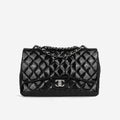 Chanel continues to present its signature line of Classic Flap bags. Under the creative direction of Karl Lagerfeld, the Classic Flap is perhaps the most acclaimed bag in all of fashion history. Timeless, elegant and sophisticated, it's no wonder the Classic Flap is, well, a classic. Featuring its infamous quilted caviar leather and interwoven chain / leather strap, the Jumbo is an absolute must-have in any luxury handbag collection. Not only is this highly coveted, stunning black bag the perfect compliment to pretty much anything you have in your wardrobe, but it's also an investment piece that will never lose its value.