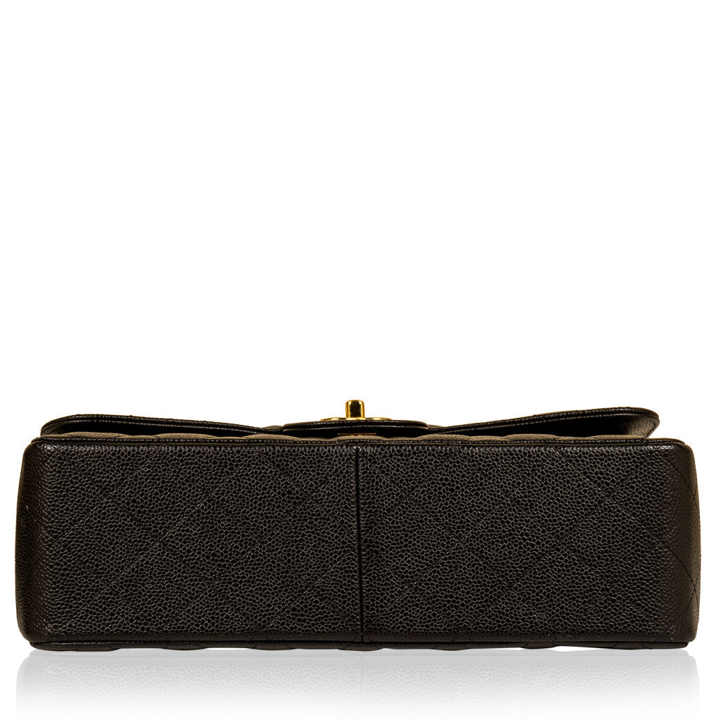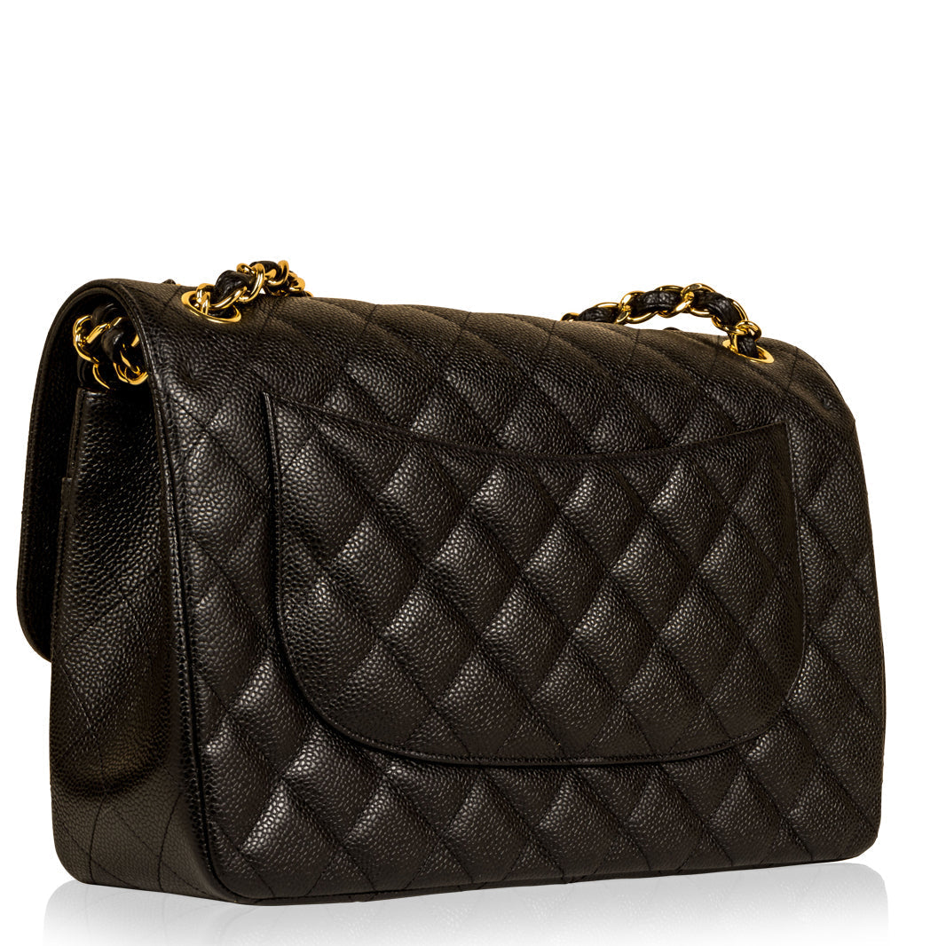 Chanel continues to present its signature line of Classic Flap bags. Under the creative direction of Karl Lagerfeld, the Classic Flap is perhaps the most acclaimed bag in all of fashion history. Timeless, elegant and sophisticated, it's no wonder the Classic Flap is, well, a classic. Featuring its infamous quilted caviar leather and interwoven chain / leather strap, the Jumbo is an absolute must-have in any luxury handbag collection. Not only is this highly coveted, this stunning black bag the perfect compliment to pretty much anything you may own in your wardrobe, but it's also an investment piece that will never lose its value. Embodying elegance and traditional femininity to a T, a Chanel bag is a purchase you won't ever regret.