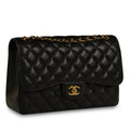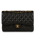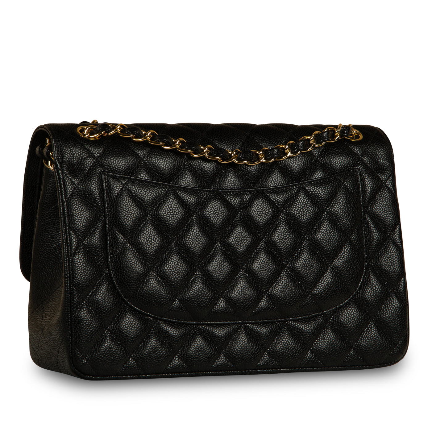 Chanel continues to present its signature line of Classic Flap bags. Under the creative direction of Karl Lagerfeld, the Classic Flap is perhaps the most acclaimed bag in all of fashion history. Timeless, elegant and sophisticated, it's no wonder the Classic Flap is, well, a classic. Featuring its renowned buttery soft lambskin leather and interwoven chain/leather strap, the Jumbo is an absolute must-have in any luxury handbag collection. Not only is this highly coveted, stunning black bag the perfect complement to pretty much anything you have in your wardrobe, but it's also an investment piece that will never lose its value. Embodying elegance and traditional femininity to a T, a Chanel bag is a purchase you won't ever regret.