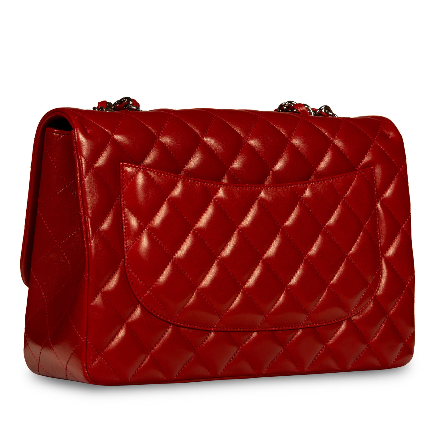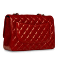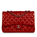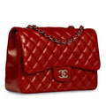 Chanel continues to present its signature line of Classic Flap bags. Under the creative direction of Karl Lagerfeld, the Classic Flap is perhaps the most acclaimed bag in all of fashion history. Timeless, elegant and sophisticated, it's no wonder the Classic Flap is, well, a classic. Featuring its iconic quilted lambskin leather and interwoven chain / leather strap, the Jumbo is an absolute must-have in any luxury handbag collection. Not only is this highly coveted, this stunning Red bag is the perfect compliment to pretty much anything you may own in your wardrobe, but it's also an investment piece that will never lose its value. Embodying elegance and traditional femininity to a T, a Chanel bag is a purchase you won't ever regret.