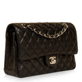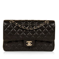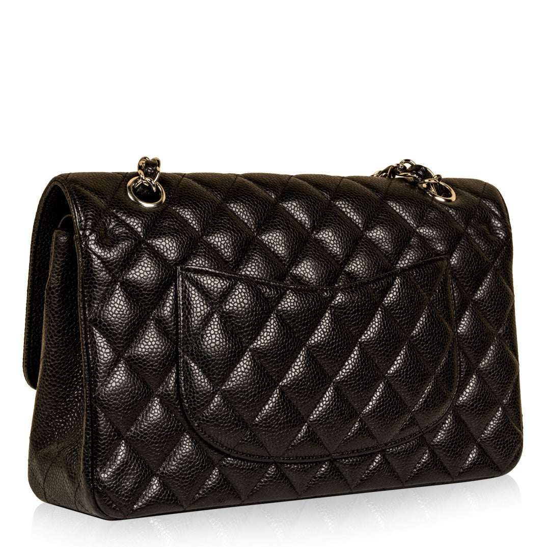 Under the creative direction of Karl Lagerfeld, Chanel continues with its line of classic quilted bags. This special bag is a vintage edition to the modern day versions. The enviable Double Flap bag is crafted in hard wearing caviar leather, and detailed with fine stitching and silver hardware. The chain is interwoven with leather and can be worn on either a single shoulder strap or doubled up. The classic black colour means this bag fits seamlessly into any wardrobe, and it can stay in there forever! The Classic Flap from Chanel is a true investment piece - in the timeless combination of black and silver.