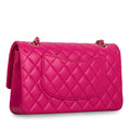 It's true when they say that legends never die, at least in Chanel's case when it comes to their iconic Classic Flap bags. One of the most acclaimed and desired bags in history, the Chanel Classic Flap is the ultimate must-have for any woman with a love for luxury - seriously, no handbag collection is complete without one. Presented in the brand’s signature lambskin leather and complimented by champagne gold tone hardware, the Medium Classic Flap in hot pink embodies the definition of elegance and timeless femininity. A bag that will never go out of style, this investment piece is a purchase you won't regret. The CF is a bag you can pass on to your daughter, who will pass it down to her daughter, and so forth - it's no wonder the Classic Flap is, well, a classic.