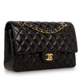 Chanel continues to present its signature line of Classic Flap bags. Under the creative direction of Karl Lagerfeld, the Classic Flap is perhaps the most acclaimed bag in all of fashion history. Timeless, elegant and sophisticated, it's no wonder the Classic Flap is, well, a classic. Featuring its iconic quilted black lambskin leather and gold tone hardware, the Classic Flap is an absolute must-have in any luxury handbag collection. Embodying elegance and traditional femininity to a T, a Chanel bag is a purchase you won't ever regret.